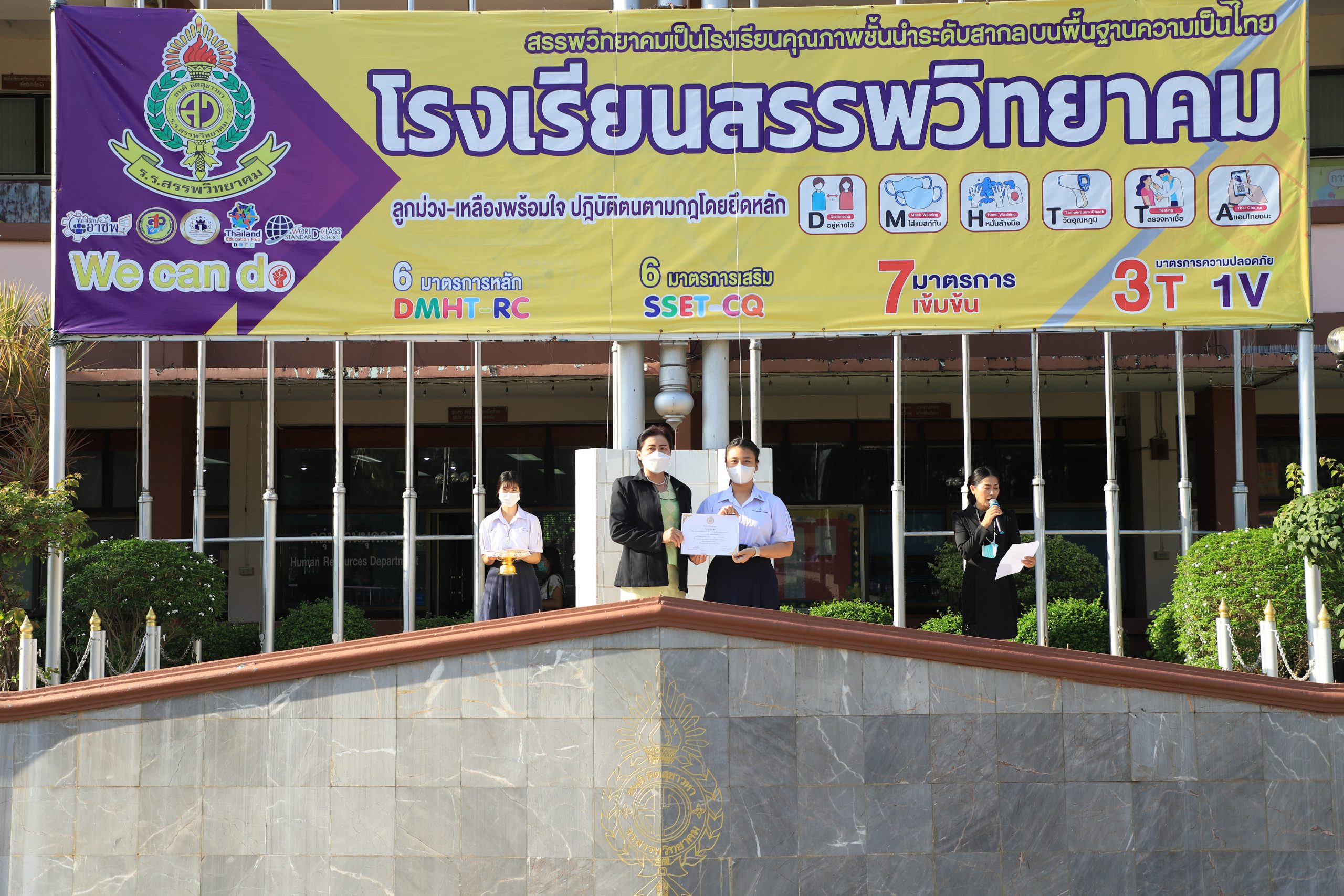 วันที่ ๓๑ สิงหาคม พ.ศ. ๒๕๖๕ นางสุภัทร เงินดี ผู้อำนวยการโรงเรียนสรรพวิทยาคม มอบหมายให้ นางสาวทิพยรัตน์ ส่งประเสริฐ รองผู้อำนวยการโรงเรียนสรรพวิทยาคม จัดพิธีมอบเกียรติบัตรและโล่รางวัลชนะเลิศรายการต่าง ๆ