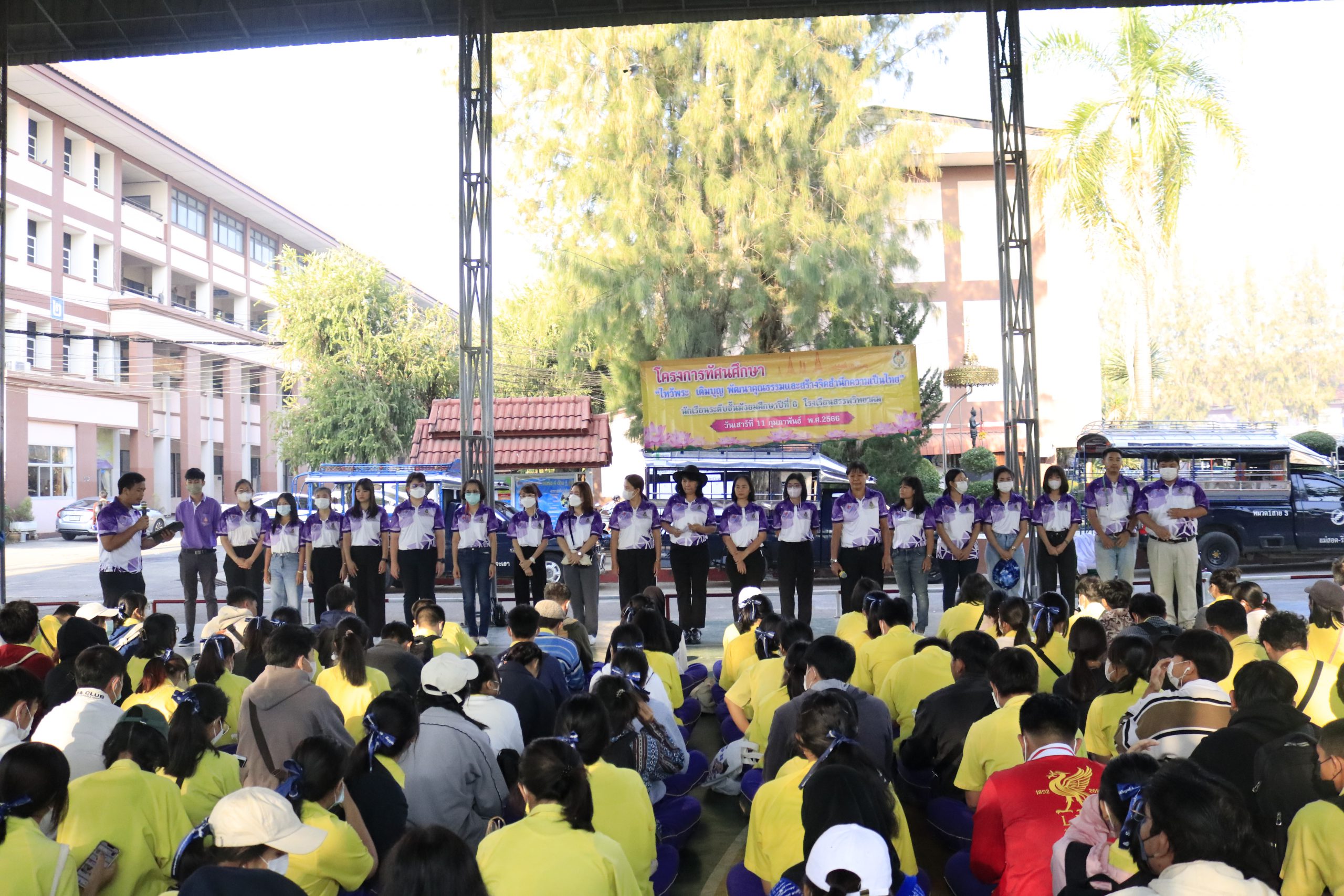 วันที่ ๑๑ กุมภาพันธ์ พ.ศ. ๒๕๖6 นายกฤษณะ เครืออยู่ ผู้อำนวยการโรงเรียนสรรพวิทยาคม มอบหมายให้ นางนารินทร์ โทนปั่น รองผู้อำนวยการโรงเรียนสรรพวิทยาคม พร้อมด้วยคณะผู้บริหาร คณะครู จัดพิธีเปิดโครงการทัศนศึกษา “ไหว้พระ เติมบุญ พัฒนาคุณธรรมและสร้างจิตสำนึกความเป็นไทย” นักเรียนระดับชั้นมัธยมศึกษาปีที่ ๖ ประกอบด้วย วัดตรีวัฒนาราม วัดไทยวัฒนาราม วัดมาตานุสรณ์ วัดไทยสามัคคี วัดศรีพรเพ็ญมาตยาราม โดยมี นายวินัย แขวนโพธิ์ หัวหน้าระดับชั้นมัธยมศึกษาปีที่ ๖ เป็นผู้กล่าวรายงาน ผู้เข้าร่วมกิจกรมประกอบด้วยคณะผู้บริหาร คณะครู และนักเรียนระดับชั้นมัธยมศึกษาปีที่ ๖ ณ บริเวณสนามบาสเกตบอลโรงเรียนสรรพวิทยาคม