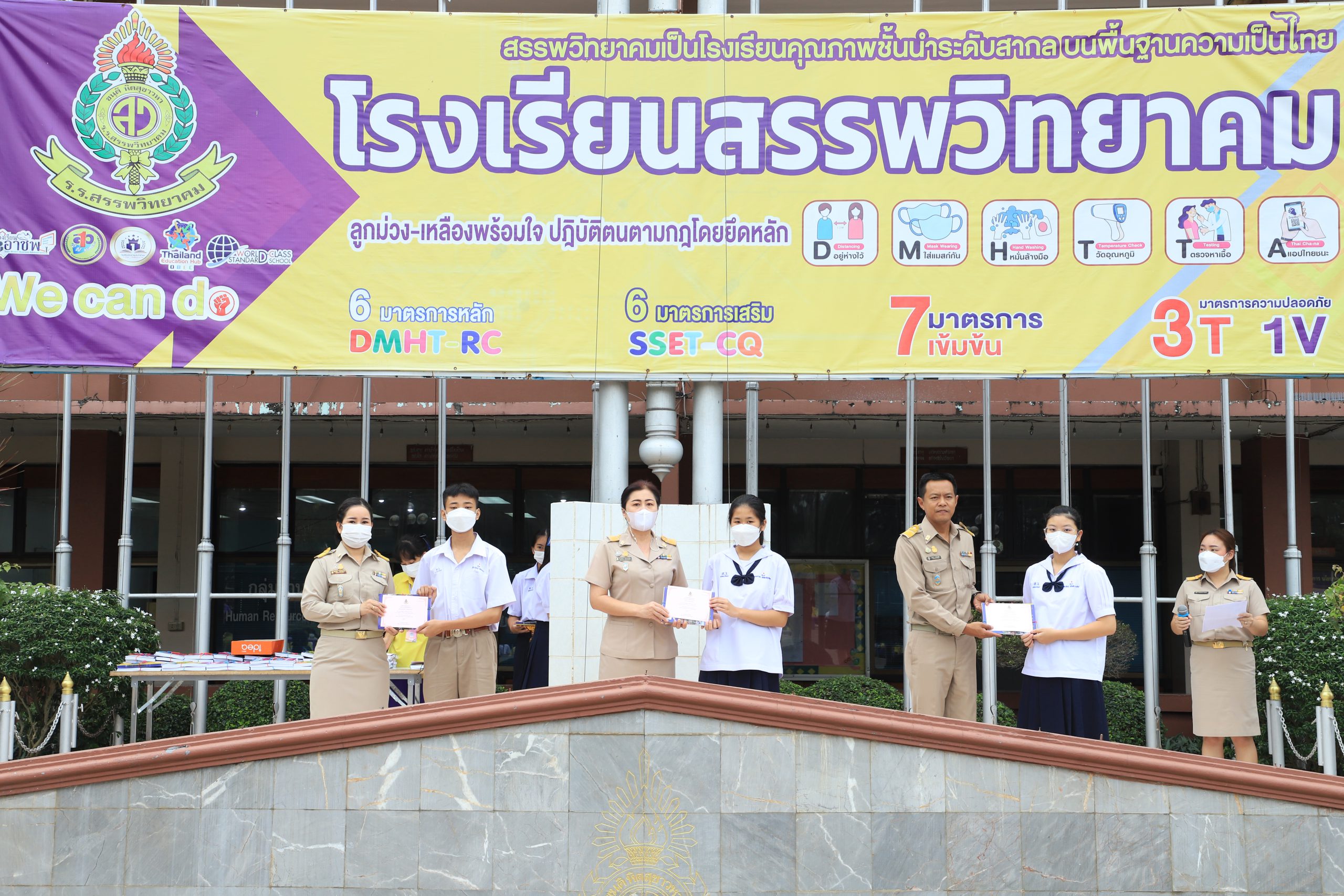 วันที่ ๑๔ พฤศจิกายน พ.ศ. ๒๕๖๕ นายกฤษณะ เครืออยู่ ผู้อำนวยการโรงเรียนสรรพวิทยาคม มอบหมายให้ นางสาวทิพยรัตน์ ส่งประเสริฐ รองผู้อำนวยการโรงเรียนสรรพวิทยาคม พร้อมด้วยคณะผู้บริหาร จัดพิธีมอบเกียรติบัตรแก่นักเรียนที่มีผลการเรียนยอดเยี่ยม เกรด ๔.๐๐ ภาคเรียนที่ ๑ ประจำปีการศึกษา ๒๕๖๕ ระดับชั้นมัธยมศึกษาตอนต้น จำนวน ๕๖ คน โดยมี นางสาวทิพยรัตน์ ส่งประเสริฐ รองผู้อำนวยการโรงเรียนสรรพวิทยาคม กล่าวชื่นชมและให้โอวาทแก่นักเรียน ณ โรงเรียนสรรพวิทยาคม