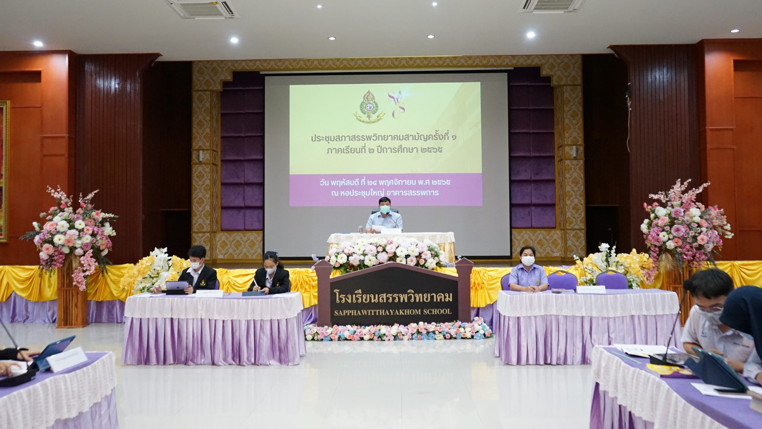 วันที่ ๒๔ พฤศจิกายน พ.ศ. ๒๕๖๕ โรงเรียนสรรพวิทยาคม จัดการประชุม ประชุมสภาสรรพวิทยาคมสามัญครั้งที่ ๑ ภาคเรียนที่ ๒ ปีการศึกษา ๒๕๖๕ เพื่อชี่แจงหารือแนวทางการจัดการเรียนการสอนและกฎระเบียบของทางโรงเรียน และแนวทางปฏบัติตนของนักเรียน ณ หอประชุมใหญ่ อาคารสรรพการ