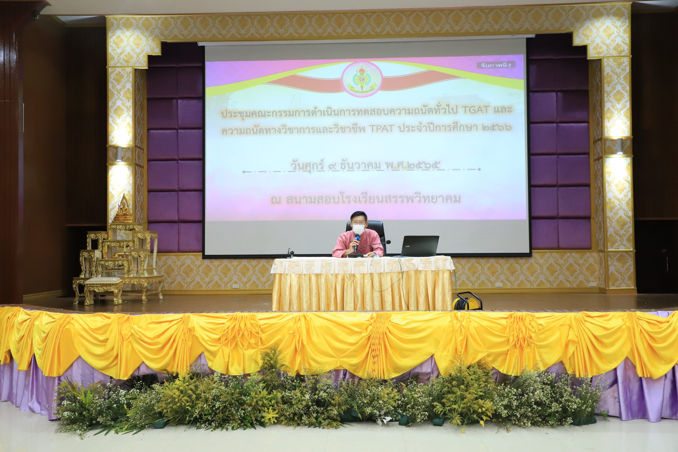 วันที่ ๙ ธันวาคม พ.ศ. ๒๕๖๕ นายกฤษณะ เครืออยู่ ผู้อำนวยการโรงเรียนสรรพวิทยาคม พร้อมด้วยคณะผู้บริหารและคณะครู เข้าร่วมประชุมคณะกรรมการดำเนินการทดสอบความถนัดทั่วไป TGAT และความถนัดทางวิชาการและวิชาชีพ TPAT ประจำปีการศึกษา ๒๕๖๖ ณ สนามสอบโรงเรียนสรรพวิทยาคม