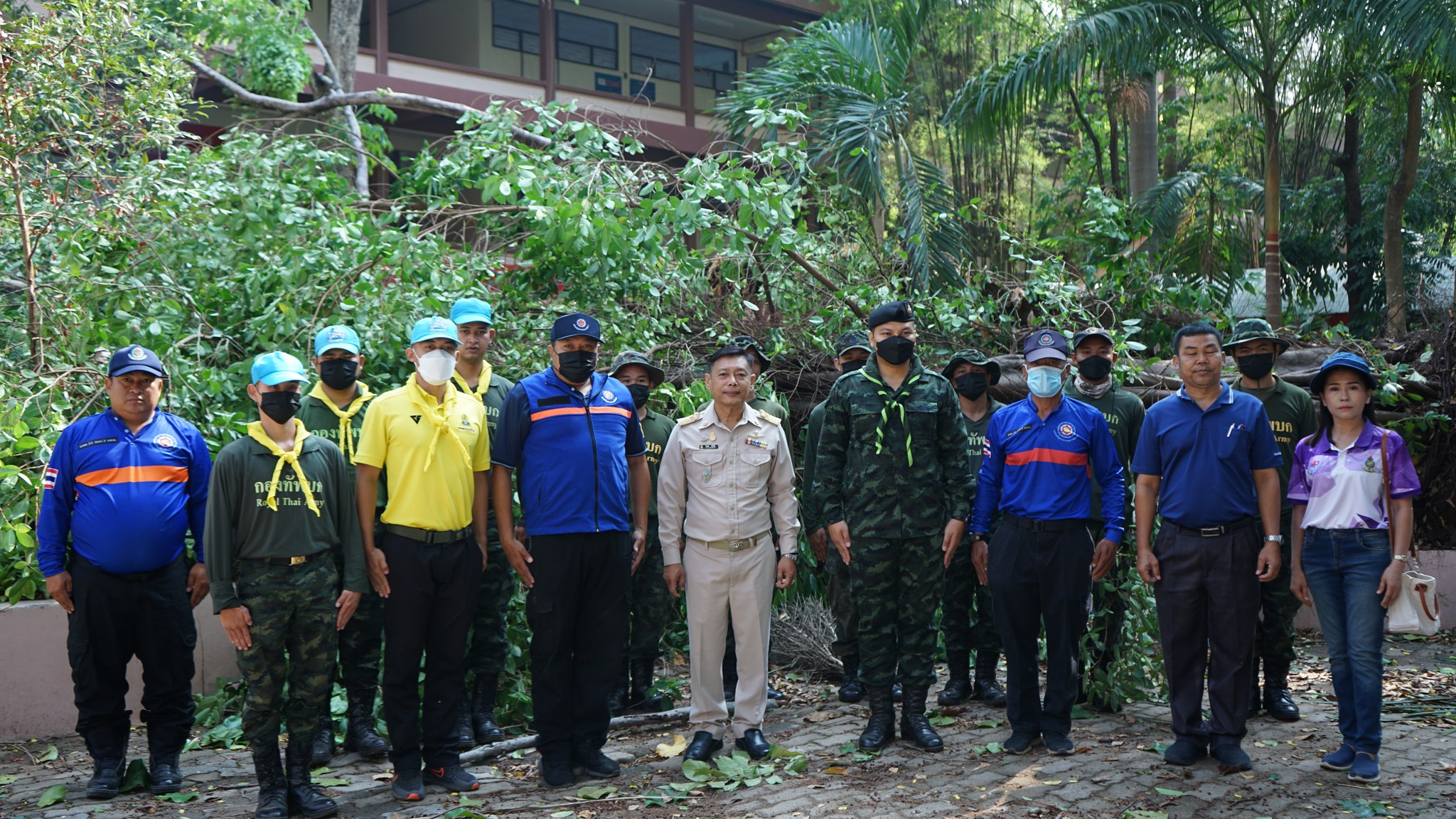 วันที่ ๒๓ เมษายน พ.ศ.๒๕๖๖ นายกฤษณะ เครืออยู่ ผู้อำนวยการโรงเรียนสรรพวิทยาคม พร้อมด้วยคณะครูและบุคลากร ได้อำนวยความสะดวกและให้ความร่วมมือแก่คณะเจ้าหน้าที่และหน่วยงานในพื้นที่ อาทิ สำนักงานป้องกันและบรรเทาสาธารณภัย ( สนง.ปภ.) จังหวัดตาก สาขาแม่สอด การไฟฟ้าส่วนภูมิภาค สาขาแม่สอด หน่วยพัฒนาการเคลื่อนที่ ๓๓ เทศบาลนครแม่สอด สถานีตำรวจภูธรแม่สอด ในการแก้ปัญหาจากสถานการณ์พายุฝนฟ้าคะนองและลมกระโชกแรง ซึ่งส่งผลให้ต้นไม้ใหญ่ในพื้นที่ของโรงเรียนสรรพวิทยาคม โค่นล้มจำนวนมาก โดยในเบื้องต้น ได้รับความอนุเคราะห์จากหน่วยงานที่เกี่ยวข้อง ทำการตัดกิ่งไม้ที่ล้มทับเสาไฟฟ้าและขวางถนน ทำให้การจราจรเป็นไปอย่างปกติ นอกจากนั้นยังได้ทำกรสำรวจต้นไม้ที่โค่นล้มในบริเวณสถนศึกษา เพื่อวางแผนหาแนวทางจัดเก็บ ณ โรงเรียนสรรพวิทยาคม