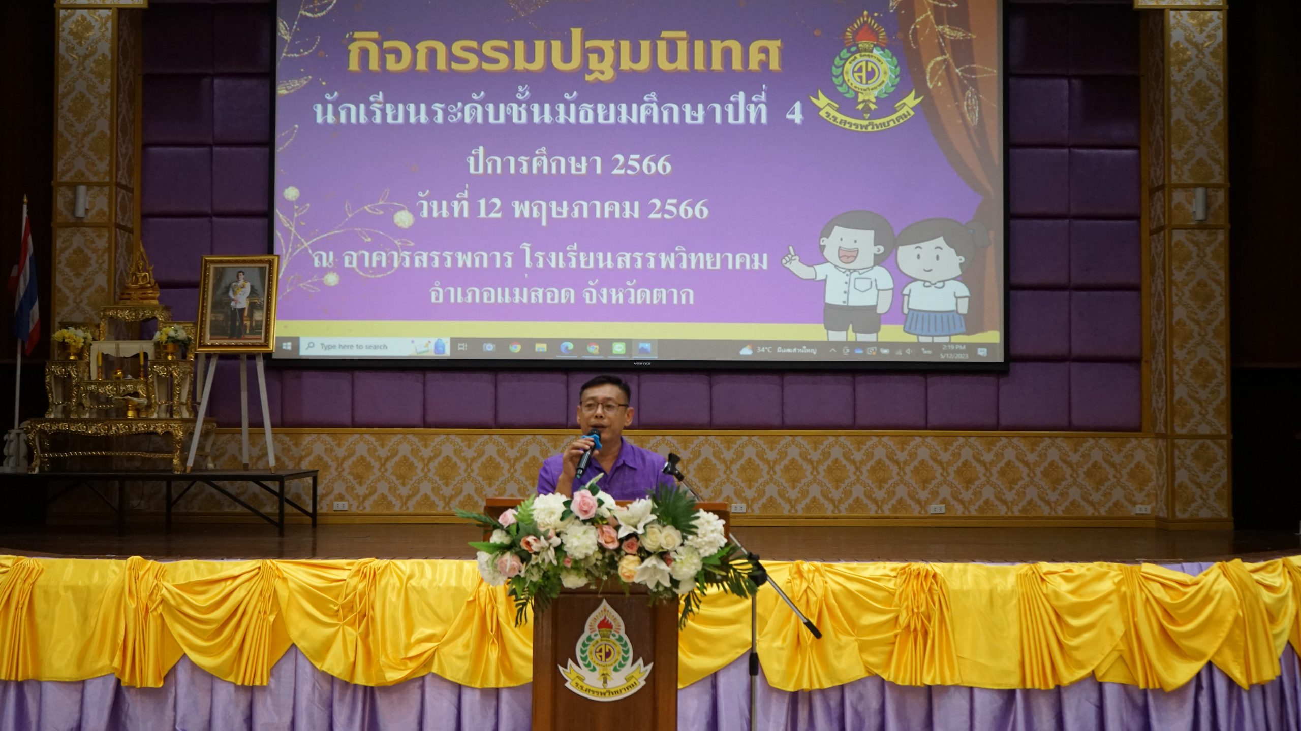 วันที่ ๑๒ พฤษภาคม พ.ศ. ๒๕๖๖ นายกฤษณะ เครืออยู่ ผู้อำนวยการโรงเรียนสรรพวิทยาคม พร้อมด้วยคณะผู้บริหาร คณะครู เป็นประธานเปิดกิจกรรมปฐมนิเทศนักเรียนระดับชั้นมัธยมศึกษาปีที่ ๔ ประจำปีการศึกษา ๒๕๖๖ ณ โรงเรียนสรรพวิทยาคม