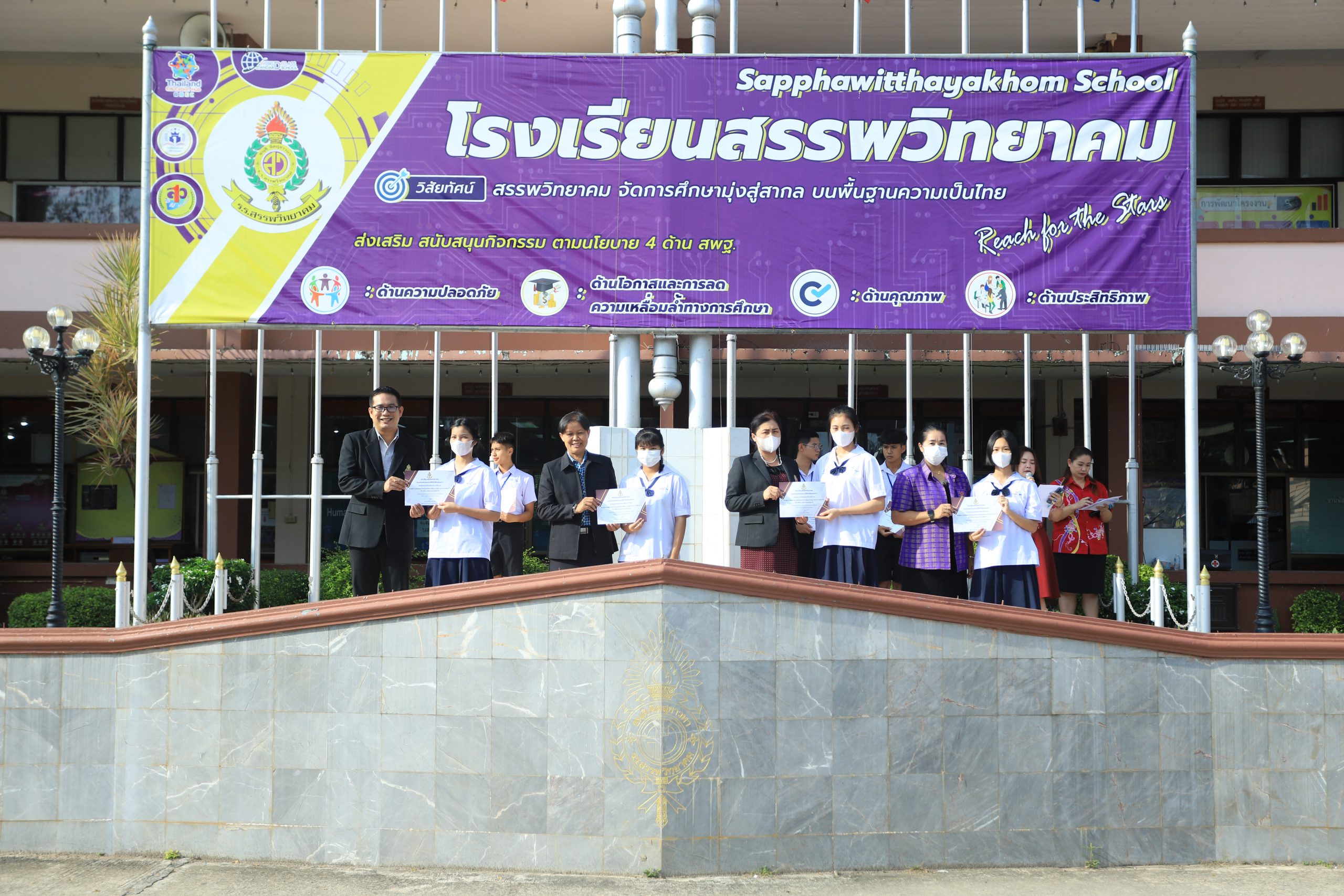 วันที่ ๑ มิถุนายน พ.ศ. ๒๕๖๖ นายกฤษณะ เครืออยู่ ผู้อำนวยการโรงเรียนสรรพวิทยาคม มอบหมายให้ นางนารินทร์ โทนปั่น รองผู้อำนวยการโรงเรียนสรรพวิทยาคม พร้อมด้วยคณะผู้บริหาร จัดพิธีมอบเกียรติบัตรแก่นักเรียนที่มีความรับผิดชอบส่งสมุดบันทึกการเรียนการสอนครบทุกสัปดาห์ ภาคเรียนที่ ๒ ปีการศึกษา ๒๕๖๕ โดยมีนางนารินทร์ โทนปั่น รองผู้อำนวยการโรงเรียนสรรพวิทยาคม กล่าวชื่นชมแสดงความยินดีและให้โอวาทแก่นักเรียน ณ โรงเรียนสรรพวิทยาคม