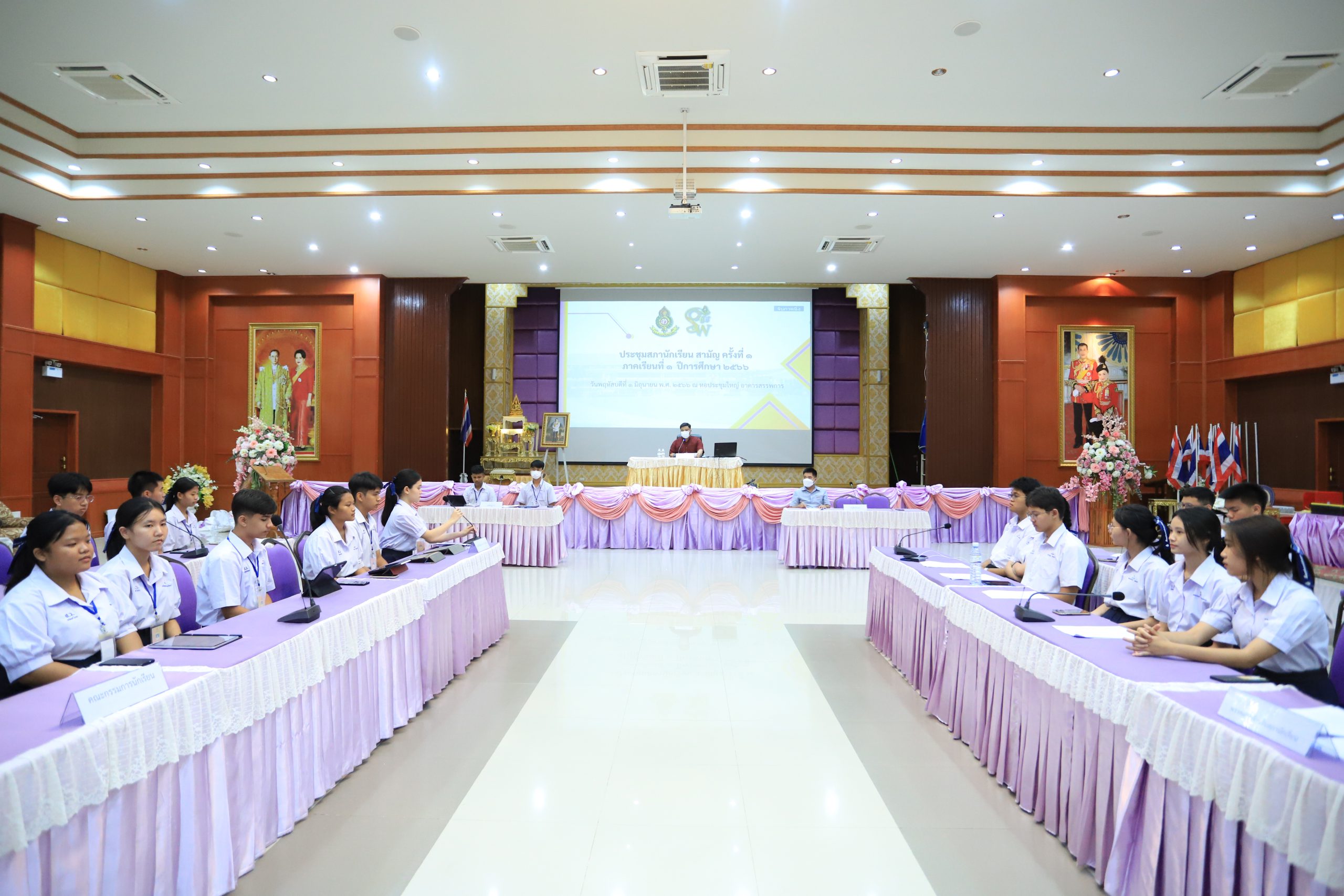 วันที่ ๑ มิถุนายน พ.ศ. ๒๕๖๖ นายกฤษณะ เครืออยู่ ผู้อำนวยการโรงเรียนสรรพวิทยาคม มอบหมายให้ นางนารินทร์ โทนปั่น รองผู้อำนวยการโรงเรียนสรรพวิทยาคม พร้อมด้วยคณะผู้บริหาร คณะครู และสภานักเรียน ปีการศึกษา ๒๕๖๖ จัดการประชุมสามัญสภานักเรียน ครั้งที่ ๑ ภาคเรียนที่ ๑ ปีการศึกษา ๒๕๖๖ โดยมี นางนารินทร์ โทนปั่น รองผู้อำนวยการโรงเรียนสรรพวิทยาคม เป็นประธานเปิดการประชุม ณ อาคารสรรพการ โรงเรียนสรรพวิทยาคม