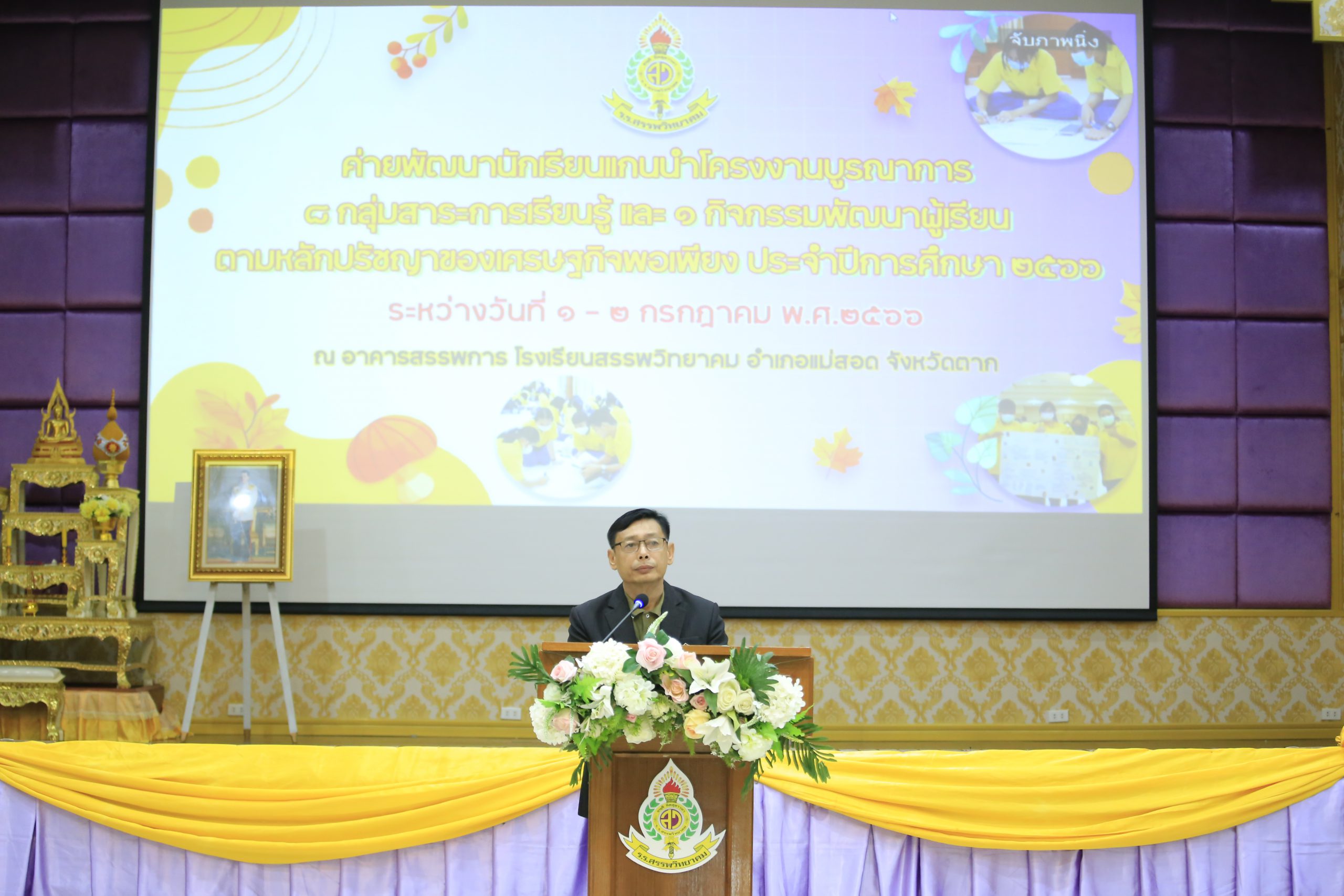 วันที่ ๑ กรกฏาคม ๒๕๖๖ นายกฤษณะ เครืออยู่ ผู้อำนวยการโรงเรียนสรรพวิทยาคม เป็นประธานเปิดโครงการ ค่ายพัฒนานักเรียนแกนนำโครงงานบูรณาการ ๘ กลุ่มสาระการเรียนรู้ และ ๑ กิจกรรมพัฒนาผู้เรียน ตามหลักปรัชญาของเศรษฐกิจพอเพียง ประจำปีการศึกษา ๒๕๖๖ โดนมี นางพัทธนันท์ จิรเลิศธนานนท์ รองผู้อำนวยการโรงเรียนสรรพวิทยาคม เป็นผู้กล่าวรายงานวัตถุประสงค์ ของโครงการ ณ อาคารสรรพการ โรงเรียนสรรพวิทยาคม
