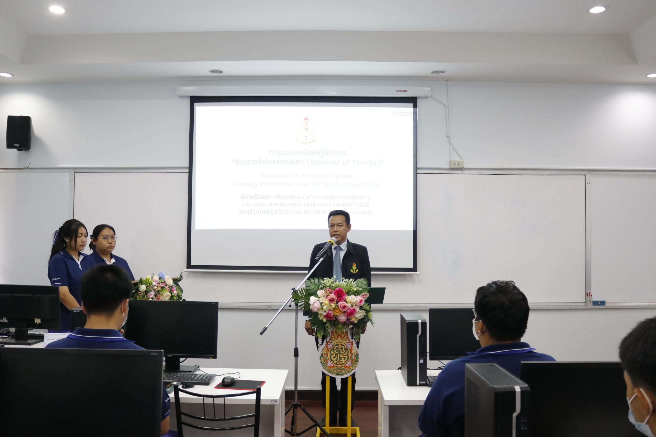 วันที่ ๘ กรกฎาคม พ.ศ. ๒๕๖๖ นายกฤษณะ เครืออยู่ ผู้อำนวยการโรงเรียนสรรพวิทยาคม มอบให้ นายปกรณ์ เกตุนานนท์ รองผู้อำนวยการโรงเรียนสรรพวิทยาคม พร้อมด้วย คณะครู ร่วมกิจกรรมอบรมเชิงปฏิบัติการ “อินเทอร์เน็ตสรรพสิ่ง (Internet of Things)” ของนักเรียนห้องเรียนพาณิชยกรรม ชั้นมัธยมศึกษาปีที่ ๖/๗ โดยมี นายปกรณ์ เกตุนานนท์ รองผู้อำนวยการโรงเรียนสรรพวิทยาคม เป็นประธานในพิธี และนางสาวธนัญชนก วิชนี ประธานคณะกรรมการจัดการอบรมเชิงปฏิบัติการ “อินเทอร์เน็ตสรรพสิ่ง (Internet of Things)” กล่าวรายงานถึงวัตถุประสงค์การจัดอบรม ณ ห้องปฏิบัติการคอมพิวเตอร์ ๑๓๓ โรงเรียนสรรพวิทยาคม