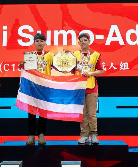 รางวัลชนะเลิศ Mini Sumo 500g Adult 500g ได้แก่ นายกณวรรธน์ อินต๊ะนา ม. 5/11 และนายภูริพงษ์ ทองแก้ว ม. 5/12