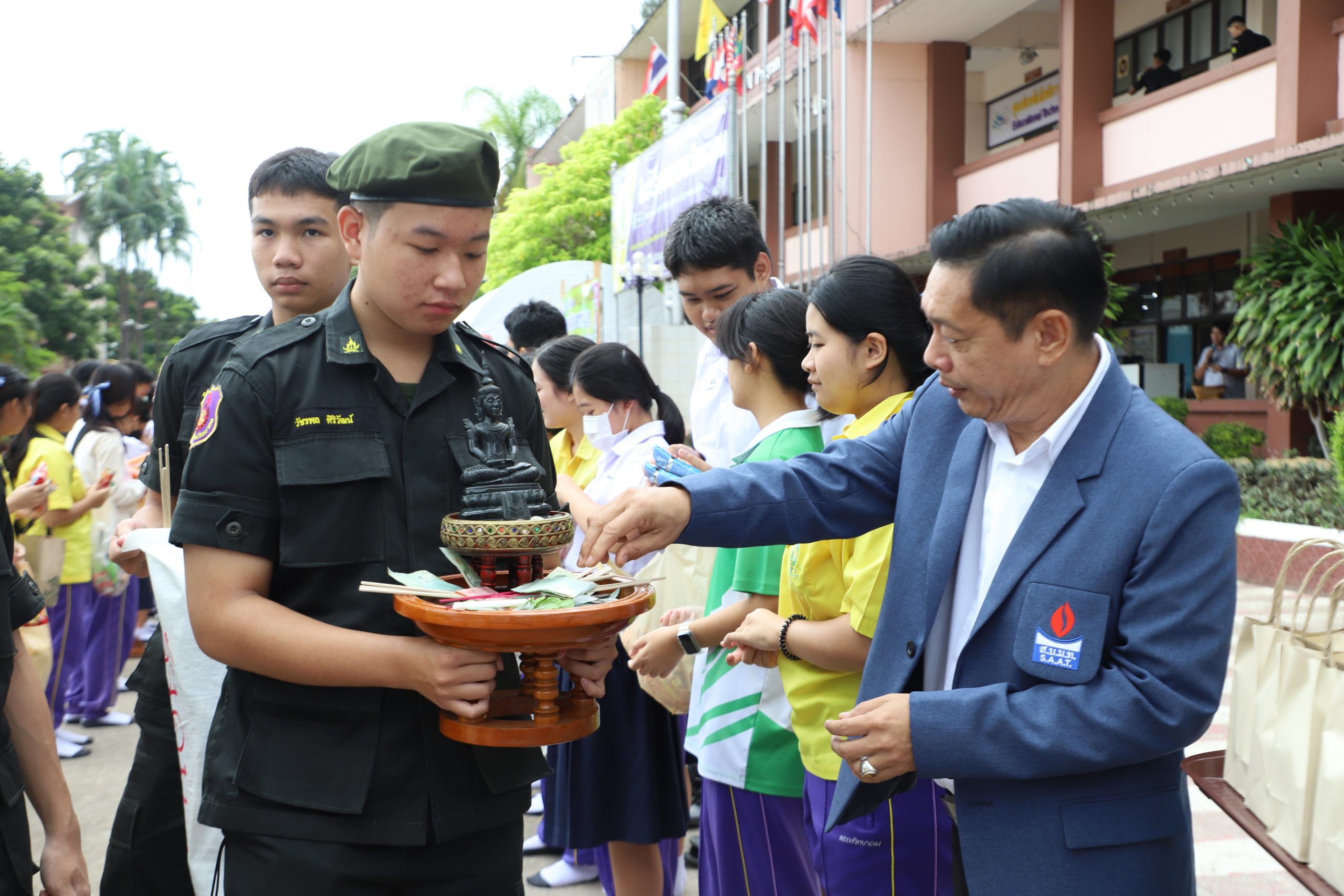 วันที่ ๒๔ สิงหาคม พ.ศ. ๒๕๖๖ นายกฤษณะ เครืออยู่ ผู้อำนวยการโรงเรียนสรรพวิทยาคม พร้อมด้วยคณะผู้บริหาร คณะครู จัดกิจกรรมตักบาตรเติมบุญ (กิจกรรมตักบาตรข้าวสารอาหารแห้งในวันพระ ตลอดฤดูกาลเข้าพรรษา) โดยมี นายกฤษณะ เครืออยู่ ผู้อำนวยการโรงเรียนสรรพวิทยาคม เป็นประธานในพิธี ณ โรงเรียนสรรพวิทยาคม