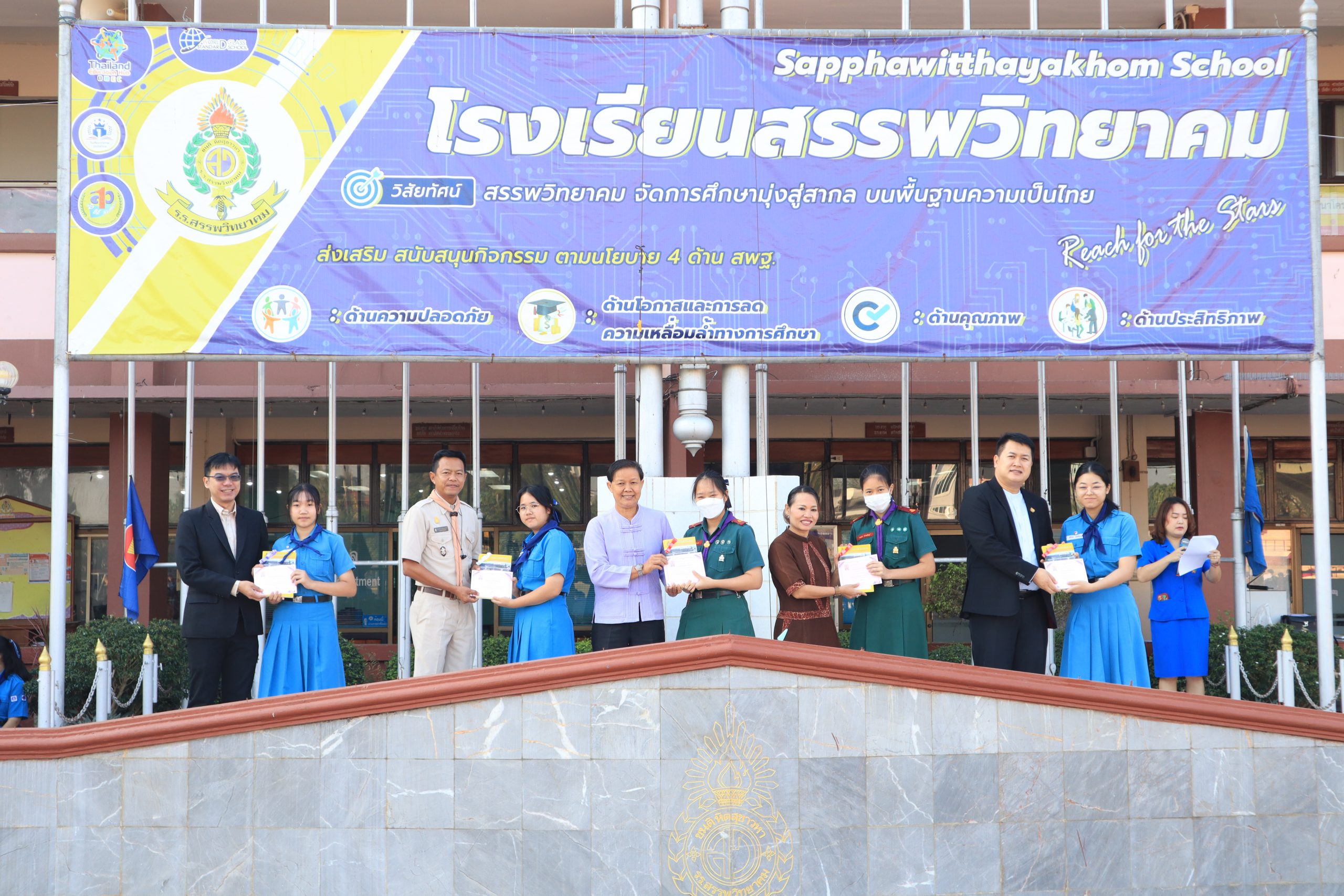วันที่ ๑๐ มกราคม ๒๕๖๗ นายกฤษณะ เครืออยู่ ผู้อำนวยการโรงเรียนสรรพวิทยาคม มอบหมายให้ นางนารินทร์ โทนปั่น รองผู้อำนวยการโรงเรียนสรรพวิทยาคม พร้อมด้วยคณะผู้บริหาร จัดพิธีมอบเกียรติบัตรแก่นักเรียนที่มีผลการเรียนดีเยี่ยม ๔.๐๐ ระดับชั้น ม.๑-๓ ประจำภาคเรียนที่ ๑ ปีการศึกษา ๒๕๖๖ โดยมี นางนารินทร์ โทนปั่น รองผู้อำนวยการโรงเรียนสรรพวิทยาคม ได้กล่าวแสดงความยินดีชื่นชมแก่นักเรียนที่มีผลการเรียนยอดเยี่ยม ๔.๐๐ ณ โรงเรียนสรรพวิทยาคม