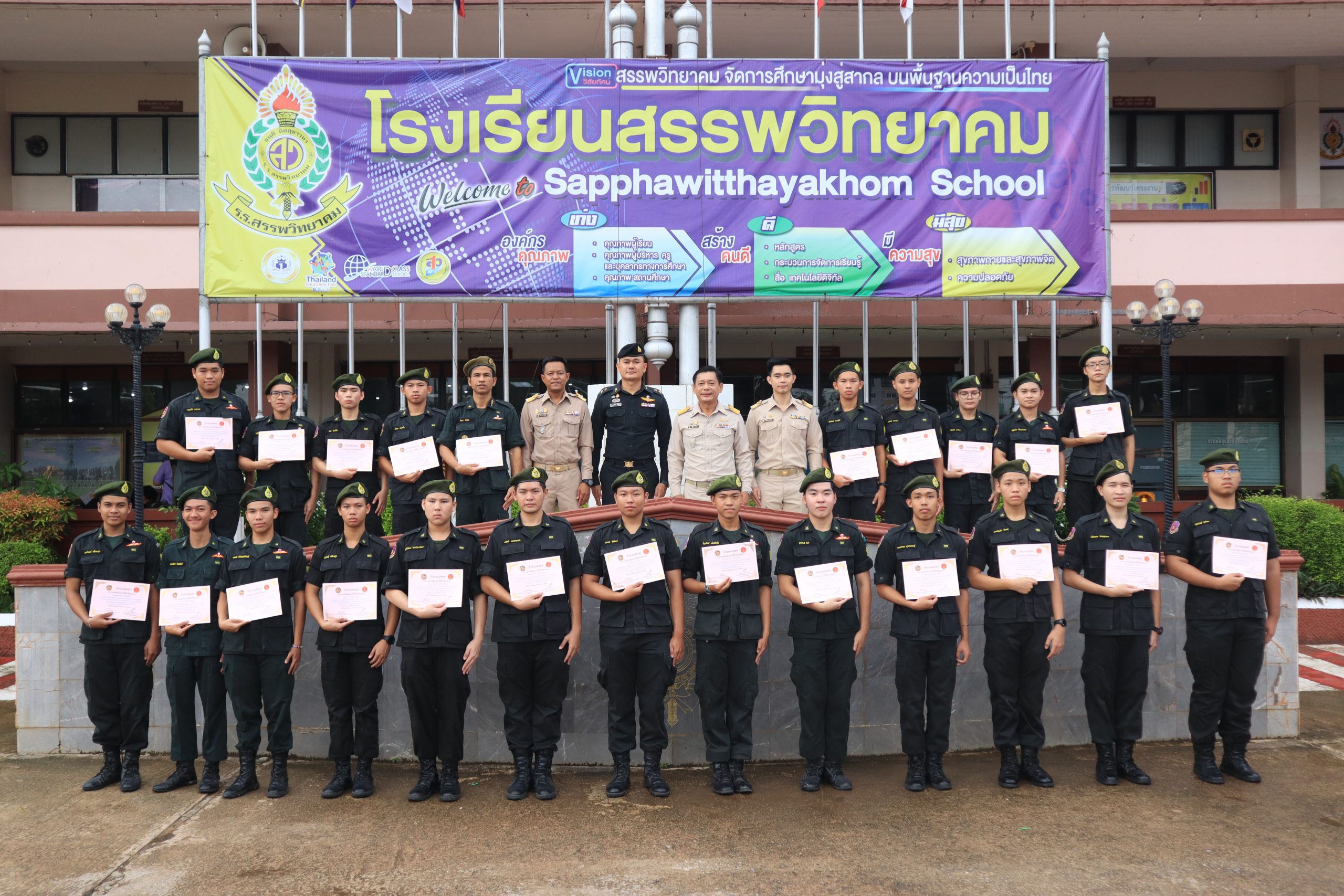 วันที่ ๔ มิถุนายน พ.ศ. ๒๕๖๗ นายกฤษณะ เครืออยู่ ผู้อำนวยการโรงเรียนสรรพวิทยาคม พร้อมด้วยคณะผู้บริหาร จัดพิธีมอบเกียรติบัตรแก่นักศึกษาวิชาทหาร ผู้มีจิตอาสาในการช่วยเหลือการตรวจเลือกทหารกองเกินเข้ารับราชการกองประจำการ ประจำปี ๒๕๖๗ โดย ร้อยโทวรรณศิลป์ อินทรา สัสดีอำเภอแม่สอด มอบเกียรติบัตรและกล่าวชื่นชมแก่นักศึกษาวิชาทหาร ณ โรงเรียนสรรพวิทยาคม