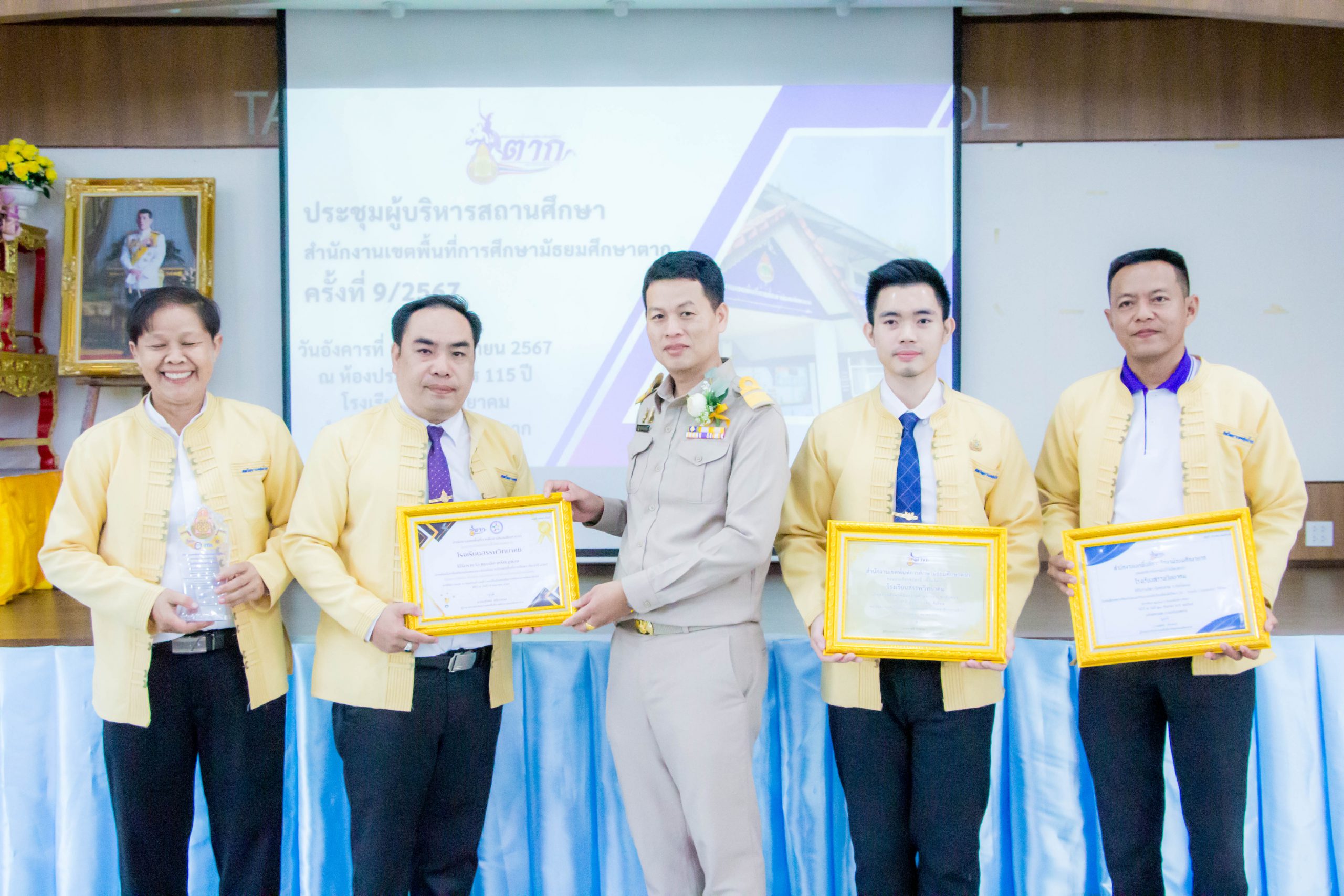 วันที่ ๑๒ พฤศจิกายน พ.ศ. ๒๕๖๗ โรงเรียนสรรพวิทยาคม ร่วมการประชุมผู้บริหารสถานศึกษา ครั้งที่ ๙/๒๕๖๗ สำนักงานเขตพื้นที่การศึกษามัธยมศึกษาตาก โดยมี นายอาณัติ ผาพรม ผู้อำนวยการสำนักงานเขตพื้นที่การศึกษามัธยมศึกษาตาก เป็นประธานในพิธี นายกฤษณะ เครืออยู่ ผู้อำนวยการโรงเรียนสรรพวิทยาคม มอบหมายให้ นางนารินทร์ โทนปั่น รองผู้อำนวยการโรงเรียนสรรพวิทยาคม พร้อมด้วยคณะผู้บริหาร เข้าร่วมการประชุม และรับเกียรติบัตรพร้อมโล่รางวัล ณ โรงเรียนตากพิทยาคม