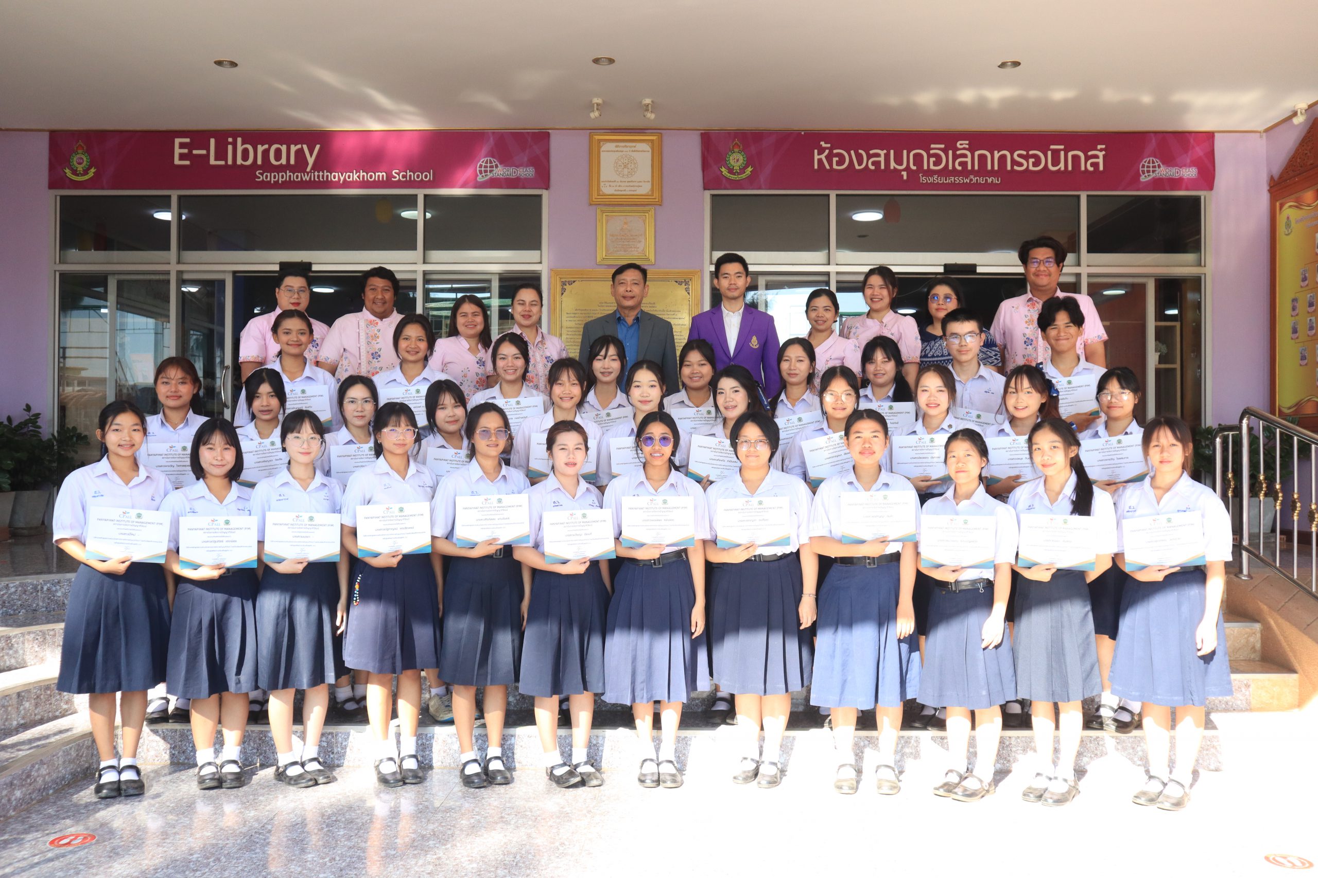 วันที่ ๒๖ กุมภาพันธ์ พ.ศ. ๒๕๖๘ โรงเรียนสรรพวิทยาคม จัดพิธีมอบประกาศนียบัตร และแสดงความยินดี ผู้จบหลักสูตร ศิลป์ภาษาจีนเพื่อธุรกิจ ๔.๐ นักเรียนห้องเรียนภาษาจีน รุ่นที่ ๘ General Chinese Classroom:GCC ประจำปี ๒๕๖๗ จากสถาบันการจัดการปัญญาภิวัฒน์ โดยมี นายกฤษณะ เครืออยู่ ผู้อำนวยการโรงเรียนสรรพวิทยาคม เป็นประธานในพิธี ณ โรงเรียนสรรพวิทยาคม