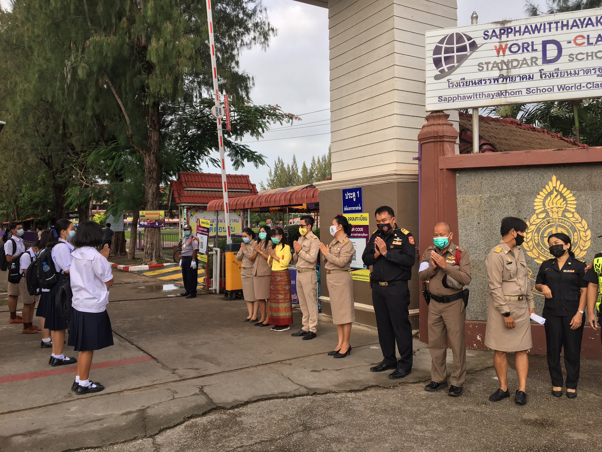 วันที่ ๒๑ มิถุนายน พ.ศ. ๒๕๖๔ นางสุภัทร เงินดี ผู้อำนวยการโรงเรียนสรรพวิทยาคม พร้อมด้วยคณะผู้บริหาร คณะครู ร่วมให้การต้อนรับคณะเจ้าหน้าที่จาก สถานีตำรวจภูธรแม่สอด ที่มาอำนวยความสะดวกด้านการจราจร แก่นักเรียนและบุคลากร และเจ้าหน้าที่จาก กรมการขนส่งทางบกตาก ที่มาตรวจ / ติดตามเกี่ยวกับรถรับ- ส่ง นักเรียน เพื่ออำนวยความสะดวกให้กับนักเรียนและบุคลากรทางการศึกษาทุกท่าน โดยโรงเรียนสรรพวิทยาคม ขอขอบคุณมา ณ โอกาสนี้ ทั้งนี้ โรงเรียนสรรพวิทยาคม ได้ดำเนินการตามมาตรการป้องกันการแพร่ระบาดของโรคติดเชื้อไวรัสโคโรนา 2019(COVID-19) อย่างเคร่งครัดและรัดกุม ณ โรงเรียนสรรพวิทยาคม