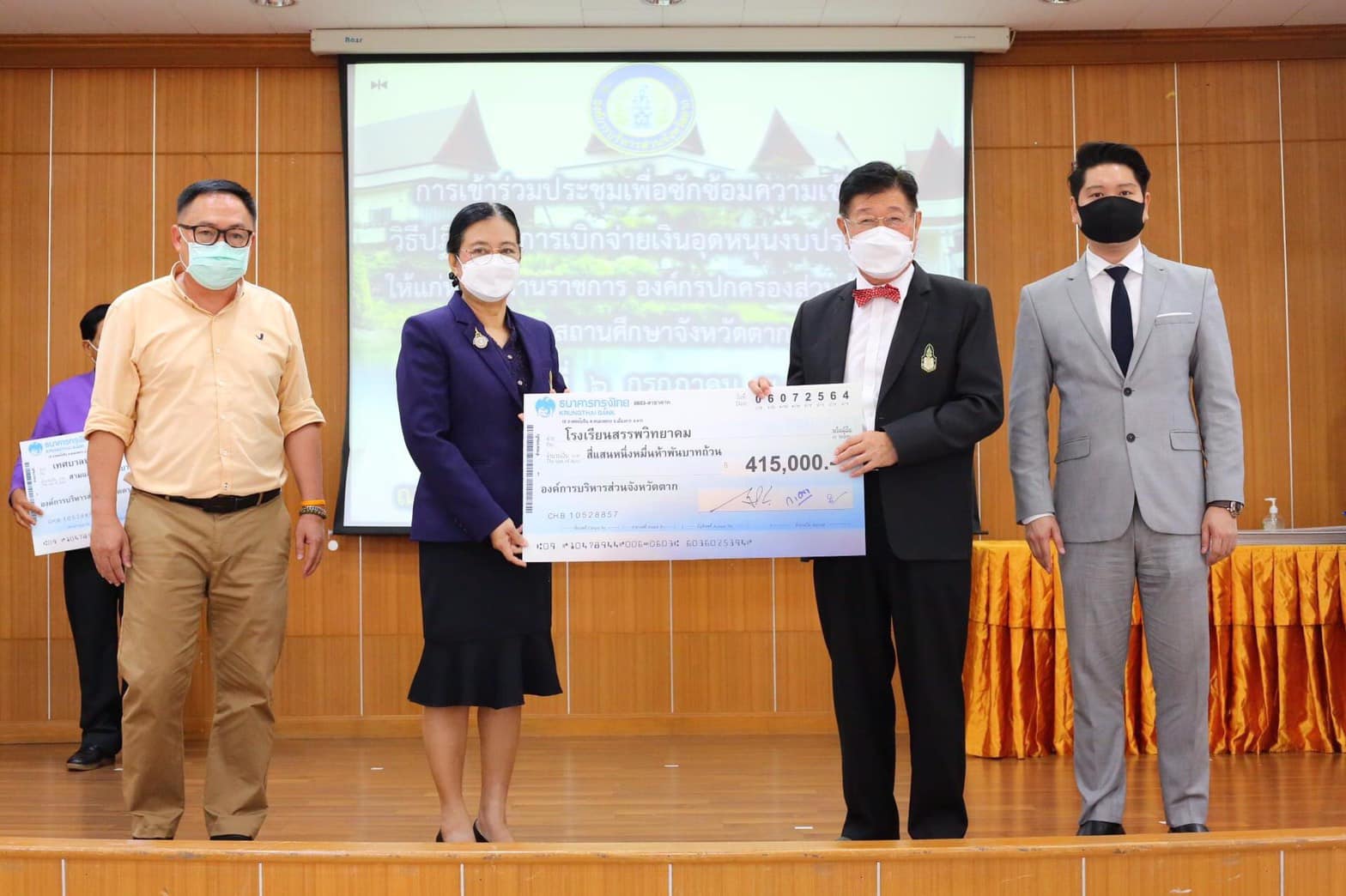 วันที่ ๕ กรกฎาคม พ.ศ. ๒๕๖๔ นางสุภัทร เงินดี ผู้อํานวยการโรงเรียนสรรพวิทยาคม พร้อมด้วย คณะครู เข้าร่วมประชุมเพื่อซักซ้อมความเข้าใจเกี่ยวกับวิธีการปฏิบัติในการเบิกจ่ายเงินอุดหนุน ประจําปีงบประมาณ ๒๕๖๔ โดยมีนายณัฐวุฒิ ทวีเกื้อกูลกิจ นายกองค์การบริหารส่วนจังหวัดตาก เป็นประธานการประชุมชี้แจง พร้อมเข้ารับมอบเงินจํานวน ๕๑๕,๐๐๐บาท (สี่แสนหนึ่งหมื่น ห้าพันบาทถ้วน) เพื่อใช้ในการจัดหาสื่อการเรียนการสอนให้แก่นักเรียน ประเภทครุภัณฑ์เครื่อง ดนตรีสากล โดยมีนายจิรวัฒน์ มงคลจุฑาเศรษฐ สมาชิกสภาองค์การบริหารส่วนจังหวัดตาก เขต ๑ อําเภอแม่สอด พร้อมทั้งคณะผู้บริหารและเจ้าหน้าที่องค์การบริหารส่วนจังหวัดตากร่วมเป็นเกียรติ ในพิธีดังกล่าว ในนามของโรงเรียนสรรพวิทยาคม ขอขอบคุณมา ณ โอกาสนี้