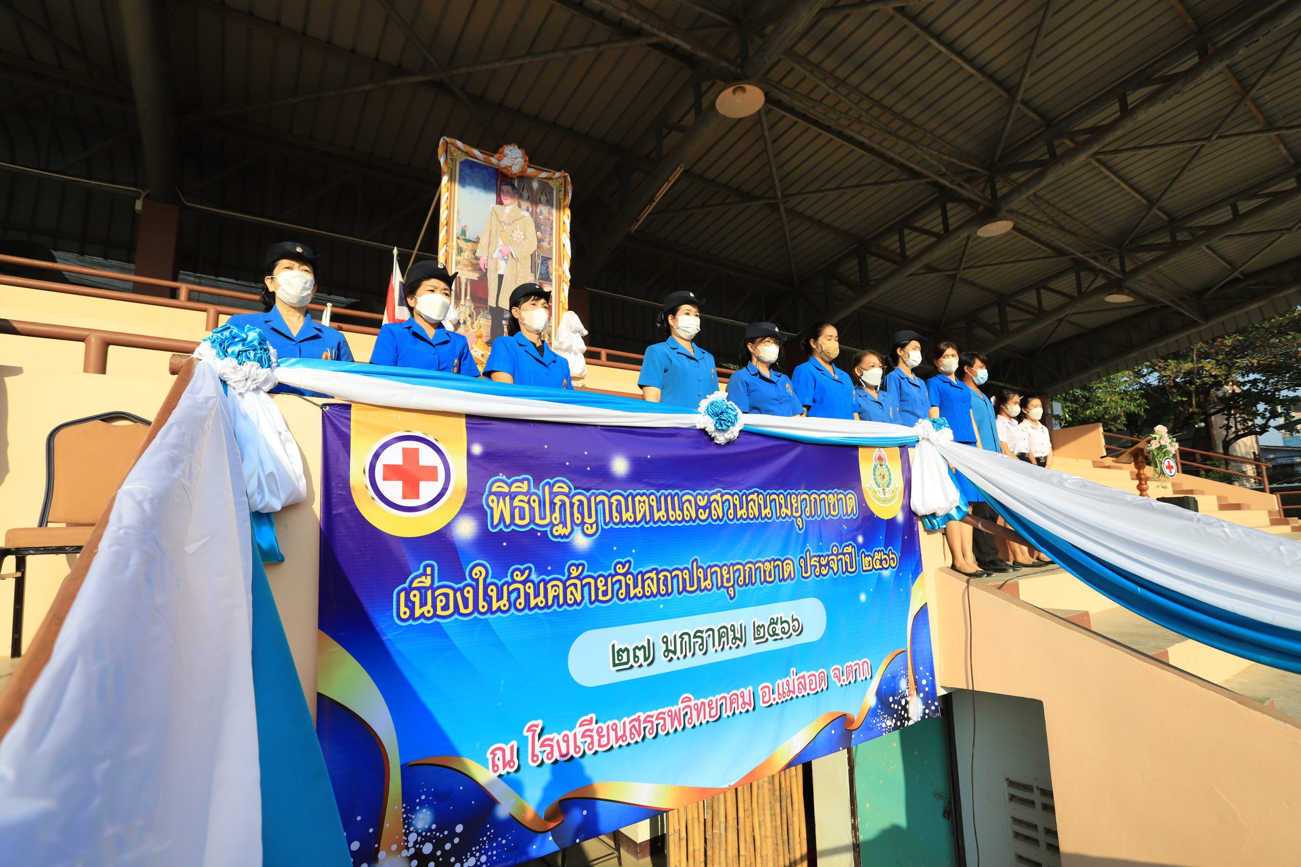 วันที่ ๒๗ มกราคม พ.ศ. ๒๕๖๖ นายกฤษณะ เครืออยู่ ผู้อำนวยการโรงเรียนสรรพวิทยาคม มอบหมายให้ นางพัธนันท์ จิรเลิศธนานนท์ รองผู้อำนวยการโรงเรียนสรรพวิทยาคม พร้อมด้วยคณะครู จัดพิธีปฏิญาณตนและสวนสนามของยุวกาชาด เนื่องในวันคล้ายวันสถาปนายุวกาชาดไทย ประจำปี ๒๕๖๖ โดยมี นางพัธนันท์ จิรเลิศธนานนท์ รองผู้อำนวยการโรงเรียนสรรพวิทยาคม ผู้อำนวยการค่าย เป็นประธานในพิธี นางสุทธิวรรณ กฤติโอภาสพงศ์ กล่าวรายงาน วัตถุประสงค์ เพื่อให้ครูผู้นำยุวกาชาดและสมาชิกยุวกาชาดตระหนักในความสำคัญของกิจกรรมยุวกาชาด ณ โรงเรียนสรรพวิทยาคม