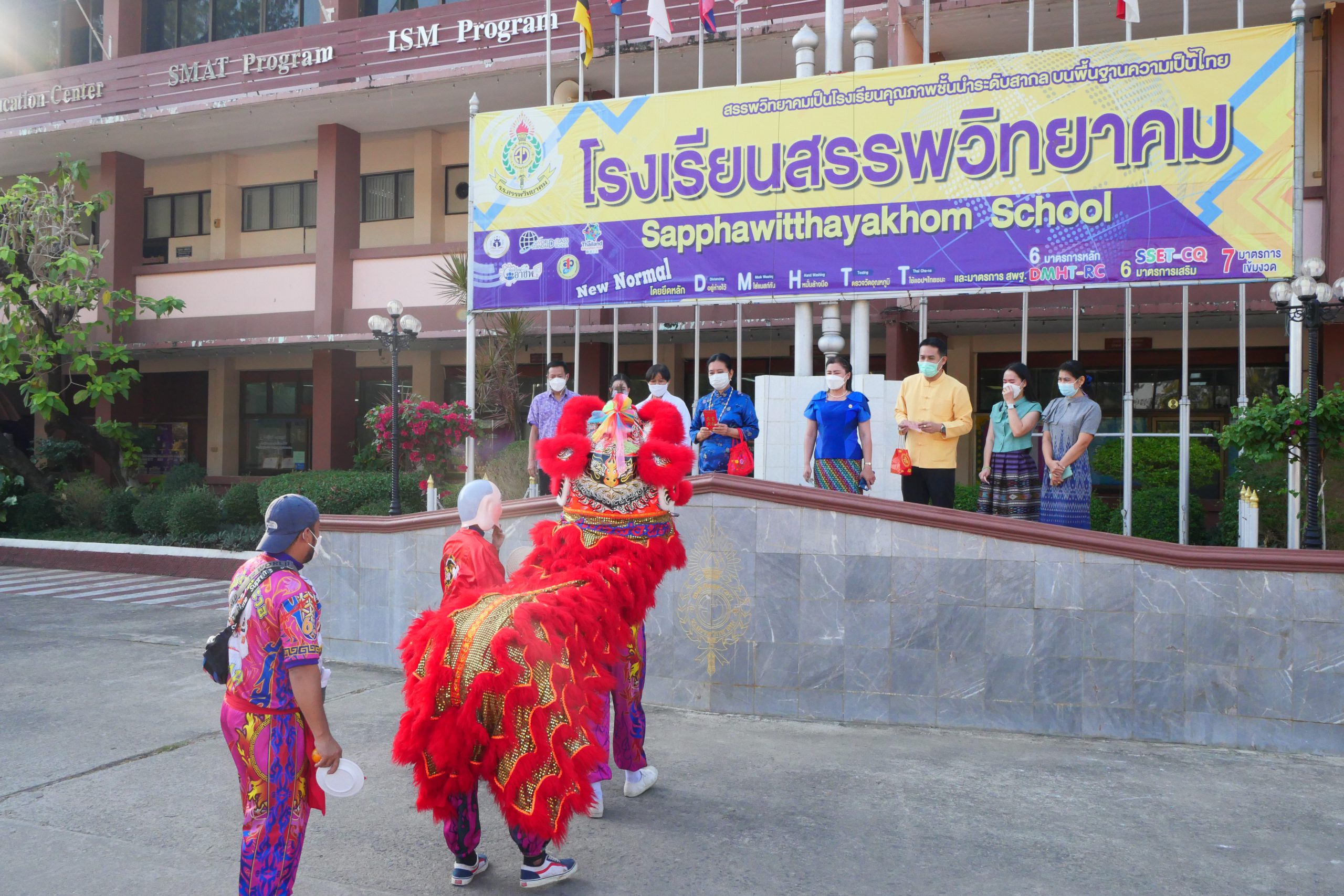 วันที่ ๔ กุมภาพันธ์ พ.ศ. ๒๕๖๕ นางสุภัทร เงินดี ผู้อำนวยการโรงเรียนสรรพวิทยาคม พร้อมด้วยคณะผู้บริหาร คณะครู ร่วมต้อนรับคณะสิงโตศิษย์เจ้าพ่อพะวอ และวงมโหรีจีน(ตั่วโล่วโก้ว) จากมูลนิธิแม่สอดสามัคคีการกุศล 美速全德善堂 เข้ามาอวยพรเนื่องในเทศกาลตรุษจีน ซึ่งในวันที่ ๔ เดือนที่ ๑ ตามปีจันทรคติจีน คติจีนถือว่าเป็นวันมงคลเปิดกิจการงาน ทั้งนี้ นางสุภัทร เงินดี ผู้อำนวยการโรงเรียนสรรพวิทยาคม กล่าวอวยพรและมอบอั่งเปาแก่คณะสิงโตศิษย์เจ้าพ่อพะวอและวงมโหรีจีน(ตั่วโล่วโก้ว) จากมูลนิธิแม่สอดสามัคคีการกุศล 美速全德善堂 เนื่องในเทศกาลตรุษจีน ประจำปีการศึกษา ๒๕๖๕ ณ โรงเรียนสรรพวิทยาคม