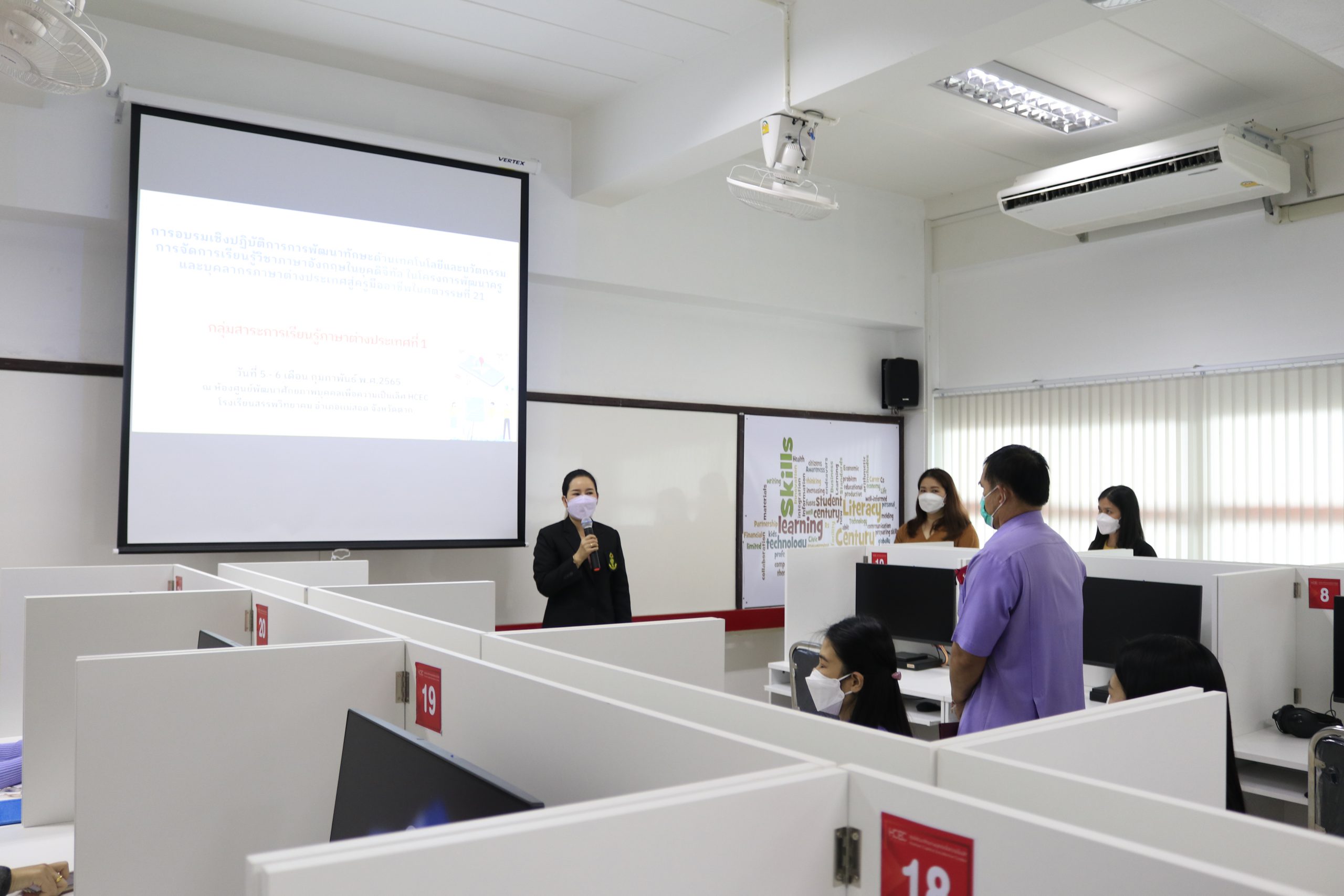 วันที่ ๐๕ กุมภาพันธ์ พ.ศ.๒๕๖๕ นางสุภัทร เงินดี ผู้อำนวยการโรงเรียนสรรพวิทยาคม มอบหมายให้ นางพัทธนันท์ จิรเลิศธนานนท์ รองผู้อำนวยการฝ่ายบริหารงานวิชาการ เป็นประธานเปิดการอบรมเชิงปฏิบัติการการพัฒนาทักษะด้านเทคโนโลยีและนวัตกรรม การจัดการเรียนรู้วิชาภาษาอังกฤษในยุคดิจิทัล ครูกลุ่มสาระภาษาต่างประเทศที่ 1 ประจำปีการศึกษา ๒๕๖๔ ณ ห้องศูนย์พัฒนาศักยภาพบุคคลเพื่อความเป็นเลิศ HCEC โรงเรียนสรรพวิทยาคม