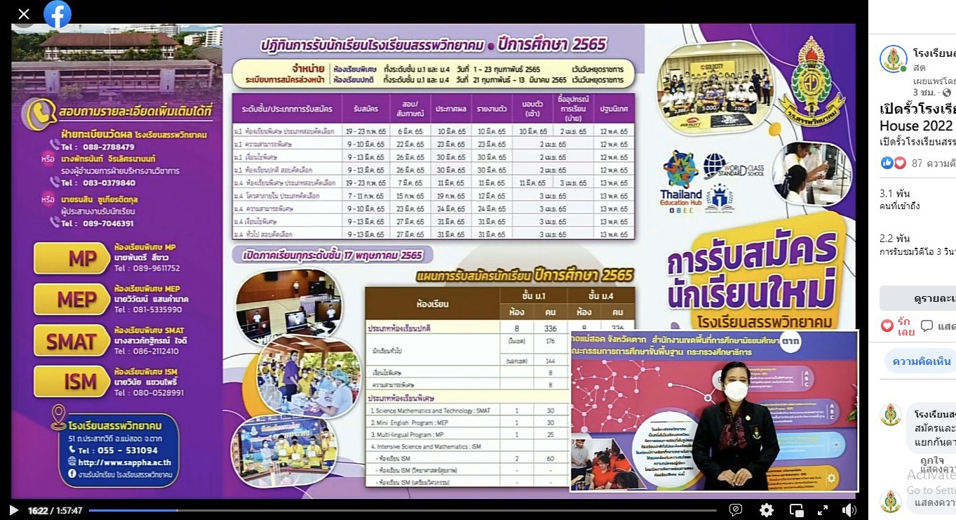 วันที่ ๑๒ กุมภาพันธ์ พ.ศ. ๒๕๖๕ นางสุภัทร เงินดี ผู้อำนวยการโรงเรียนสรรพวิทยาคม พร้อมด้วยคณะผู้บริหาร คณะครู จัดกิจกรรม Open House เลือกที่ชอบ เรียนที่ใช่ ในรั้วสรรพวิทยาคม ประจำปีการศึกษา ๒๕๖๔ ในรูปแบบออนไลน์ผ่านแพลตฟอร์ม YouTube Live และ Facebook Live ช่องเพจโรงเรียนสรรพวิทยาคม โดยมี นางสุภัทร เงินดี ผู้อำนวยการโรงเรียนสรรพวิทยาคม เป็นประธานในพิธีเปิด นางสาวแสงเดือน กองยอด พิธีกรดำเนินรายการ ณ โรงเรียนสรรพวิทยาคม
