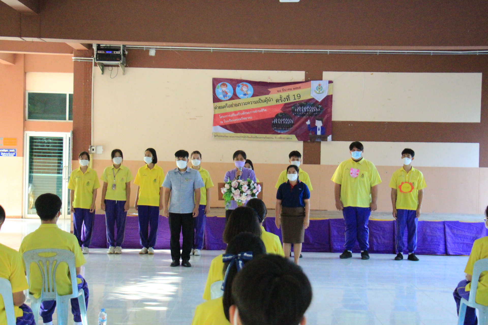 วันที่ ๒๔ มีนาคม พ.ศ. ๒๕๖๕ นางสุภัทร เงินดี ผู้อำนวยการโรงเรียนสรรพวิทยาคม มอบหมายให้นางนารินทร์ โทนปั่น รองผู้อำนวยการโรงเรียนสรรพวิทยาคม พร้อมด้วยคณะผู้บริหาร คณะครู จัดกิจกรรมค่ายภาวะความเป็นผู้นำครั้งที่ ๑๙ โดยมีนางนารินทร์ โทนปั่น รองผู้อำนวยการโรงเรียนสรรพวิทยาคม เป็นประธานเปิดกิจกรรม คณะกรรมการสภานักเรียนกล่าวรายงานกิจกรรม ทั้งนี้โรงเรียนสรรพวิทยาคม ดำเนินการตามมาตรการป้องกันการแพร่ระบาดของโรคติดเชื้อไวรัสโคโรนา 2019 โดยมีวัดอุณหภูมิและตรวจ ATK ก่อนเข้าทำกิจกรรม ๑๐๐% ณ โรงเรียนสรรพวิทยาคม
