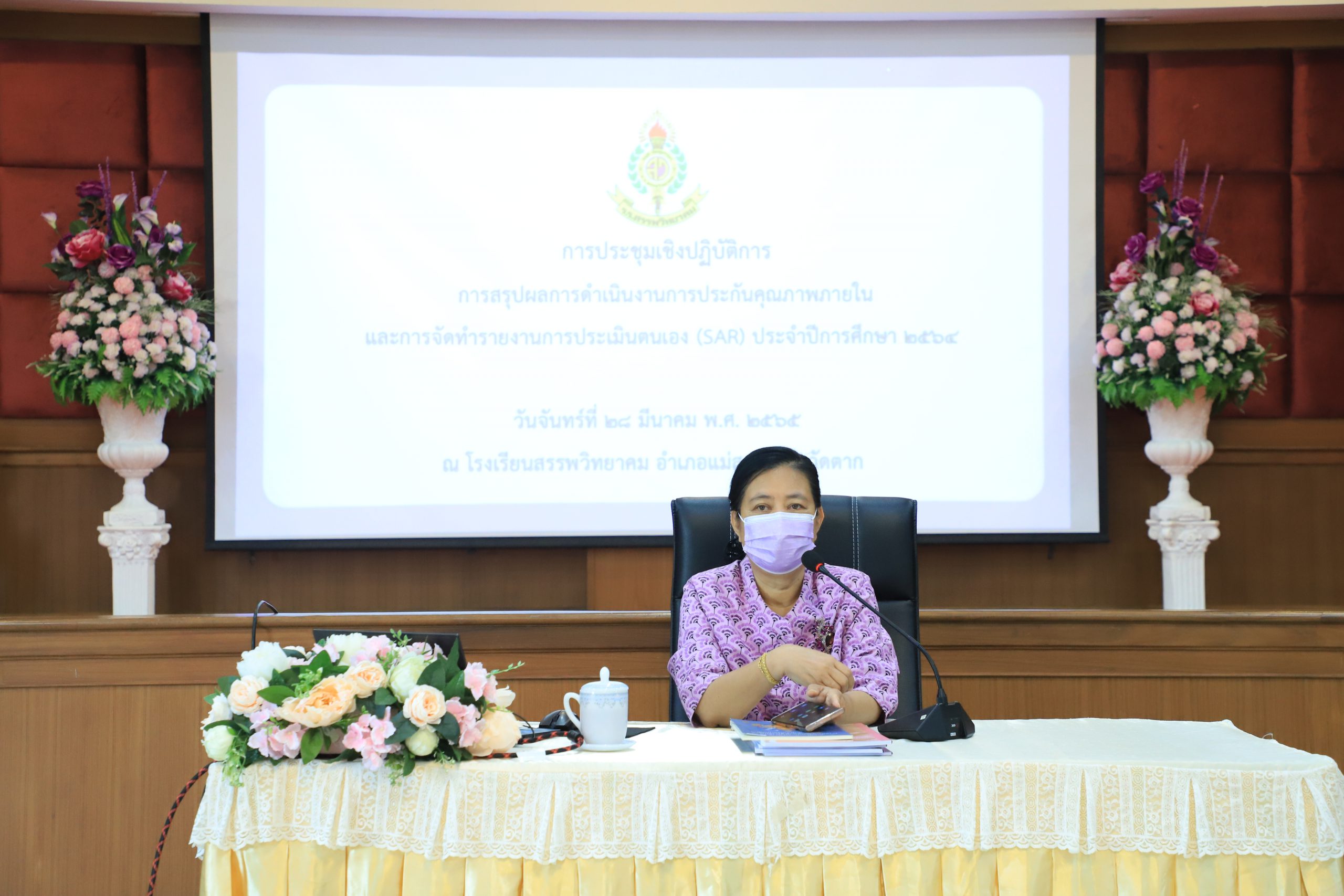 วันที่ ๒๘ มีนาคม พ.ศ. ๒๕๖๕ นางสุภัทร เงินดี ผู้อำนวยการโรงเรียนสรรพวิทยาคม พร้อมด้วยคณะผู้บริหาร คณะครู จัดการประชุมเชิงปฎิบัติการการสรุปผลการดำเนินงานการประกันคุณภาพภายในและจัดทำรายงานการประเมินตนเอง (SAR) ประจำปีการศึกษา ๒๕๖๔ โดยมี นางสุภัทร เงินดี ผู้อำนวยการโรงเรียนสรรพวิทยาคม เป็นประธานการประชุม ณ โรงเรียนสรรพวิทยาคม