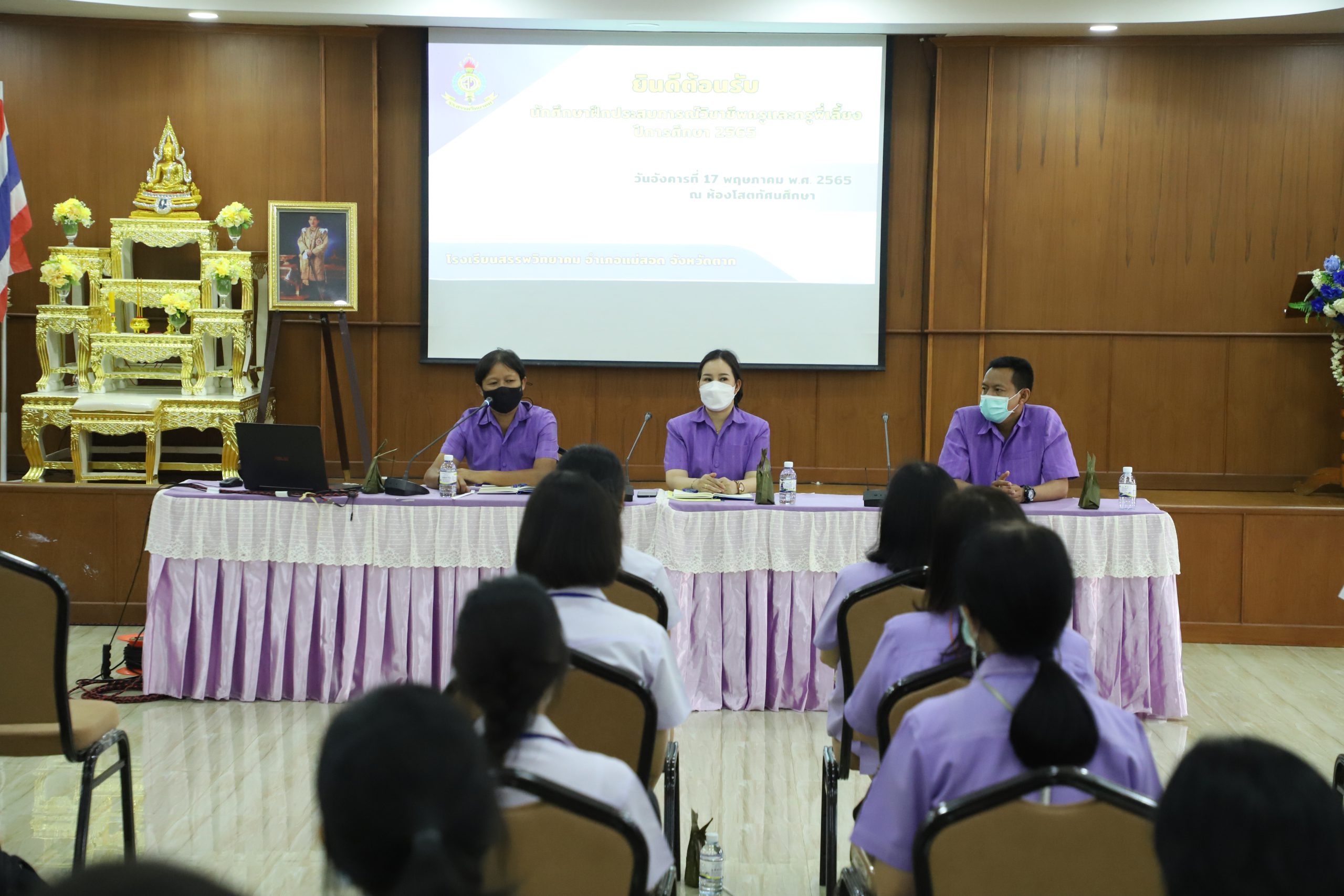 วันที่ ๑๗ พฤษภาคม พ.ศ. ๒๕๖๕ โรงเรียนสรรพวิทยาคม นำโดย นางสุภัทร เงินดี ผุ้อำนวยการโรงเรียนสรรพวิทยาคม มอบหมายให้รองผู้อำนวยการโรงเรียนสรรพวิทยาคม จัดการปฐมนิเทศนักศึกษาฝึกประสบการณ์วิชาชีพครูและครูพี่เลี้ยง ปีการศึกษา ๒๕๖๕ โดยมี นางนารินทร์ โทนปั่น รองผู้อำนวยการโรงเรียนสรรพวิทยาคม นางพัทธนันท์ จิรเลิศธนานนท์ รองผู้อำนวยการโรงเรียนสรรพวิทยาคม และนายปกรณ์ เกตนานนท์ รองผู้อำนวยการโรงเรียนสรรพวิทยาคม กล่าวต้อนรับนักศึกษาฝึกประสบการณ์วิชาชีพครูและครูพี่เลี้ยง ณ โรงเรียนสรรพวิทยาคม