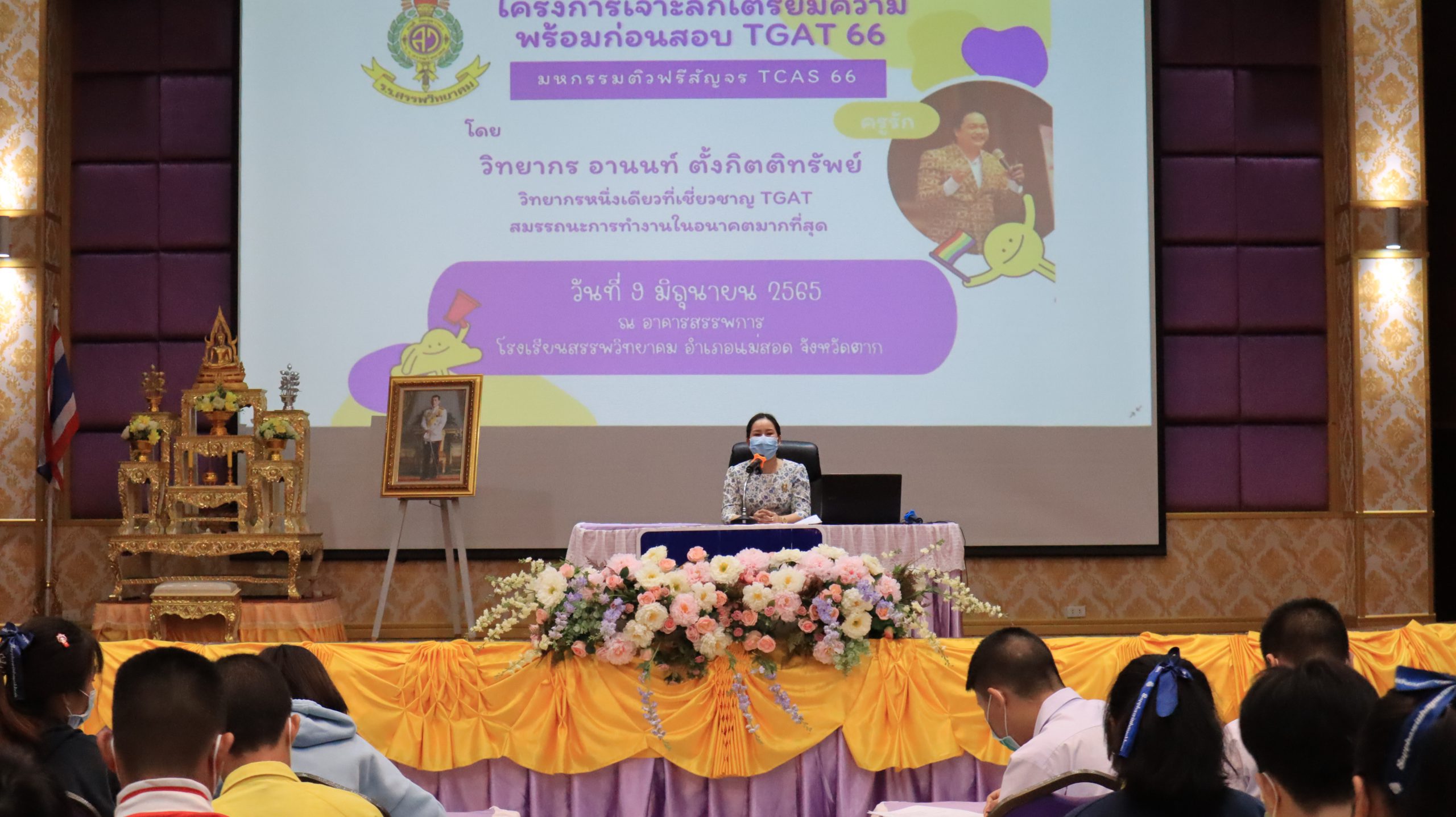 วันที่ ๙ มิถุนายน พ.ศ. ๒๕๖๕ นางสุภัทร เงินดี ผู้อำนวยการโรงเรียนสรรพวิทยาคม มอบหมายให้ นางพัทธนันท์ จิรเลิศธนานนท์ รองผู้อำนวยการโรงเรียนสรรพวิทยาคม เป็นประธานเปิด โครงการเจาะลึกเตรียมความ พร้อมก่อนสอบ TGAT 66 โดย ครูรัก วิทยากร อานนท์ ตั้งกิตติทรัพย์ วิทยากรหนึ่งเดียวที่เชี่ยวชาญ TGAT สมรรถนะการทำงานในอนาคตมากที่สุด ณ หอประชุมใหญ่สรรพการ โรงเรียนสรรพวิทยาคม