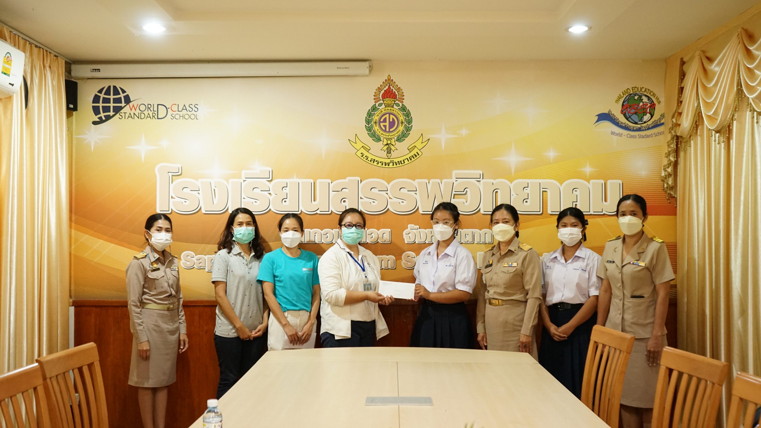 วันที่ ๑๙ มิถุนายน ๒๕๖๕ นางสุภัทร เงินดี ผู้อำนวยการโรงเรียนสรรพวิทยาคม พร้อมด้วยคณะครู ร่วมให้การต้อนรับคณะจากมูลนิธิ มูลนิธิดรีมลอปเม้นท์ ที่มามอบทุนการศึกษาแก่นักเรียนสรรพวิทยาคม จำนวน ๒ คนๆ ละ ๒,๐๐๐ บาท ได้แก่ นางสาวสุดา วิกรัยธนาคม ม.๔/๙ และ นางสาวกนกภรณ์ เนียมทัง ม.๕/๘ ณ ห้องประชุม Conference Room โรงเรียนสรรพวิทยาคม