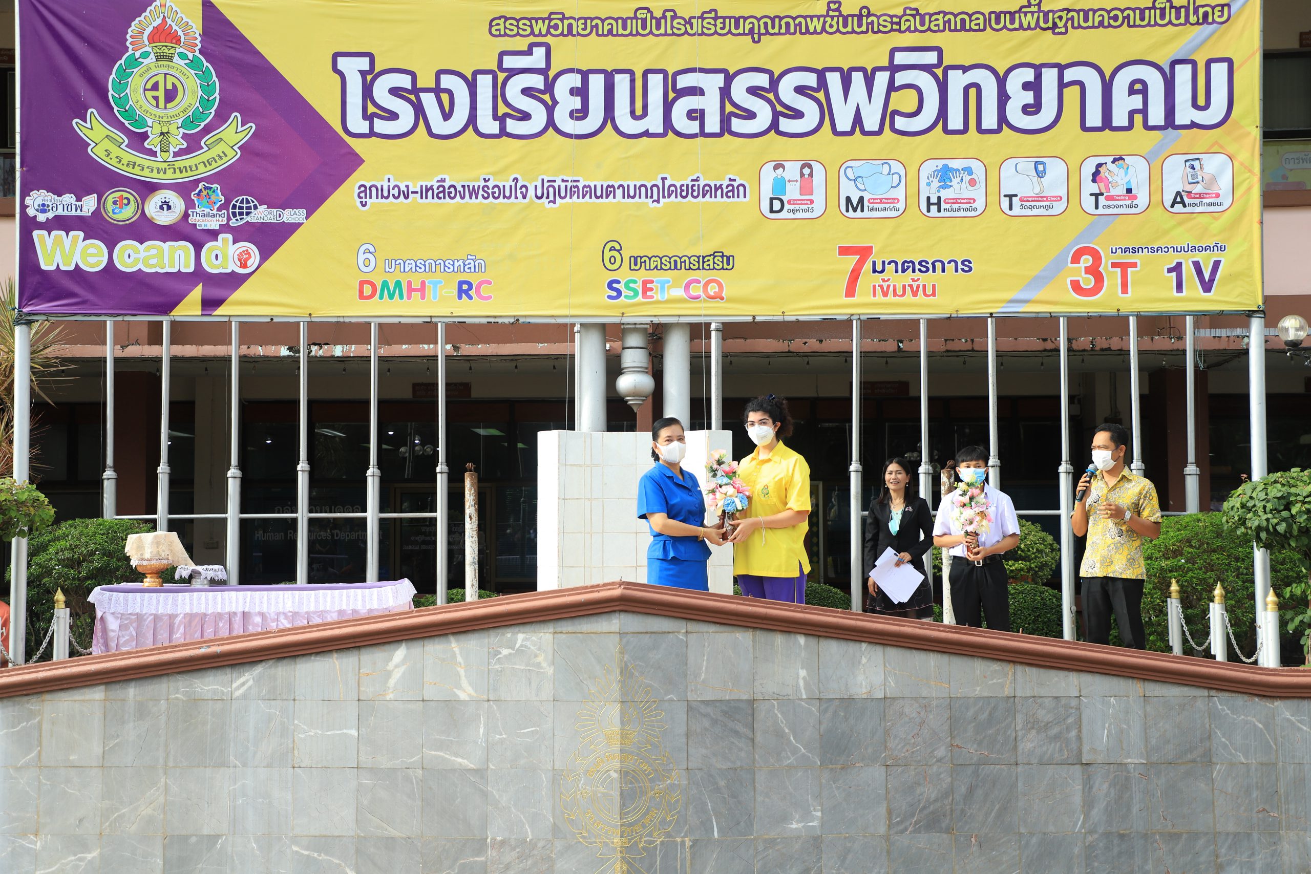 วันที่ ๑๐ สิงหาคม พ.ศ. ๒๕๖๕ โรงเรียนสรรพวิทยาคม นำโดย นางสุภัทร เงินดี ผู้อำนวยการโรงเรียนสรรพวิทยาคม พร้อมด้วยคณะผู้บริหาร ร่วมมอบช่อดอกไม้ต้อนรับนักเรียนเยาวชนแลกเปลี่ยนเอเอฟเอสจากอิตาลี Ms.Katia Fois นักเรียนแลกเปลี่ยนประจำปีการศึกษา ๒๕๖๕ และต้อนรับการกลับมาของนักเรียนสรรพวิทยาคมที่กลับจากการไปศึกษาแลกเปลี่ยน ณ ประเทศอิตาลีชื่อ นายสุรเชษฐ์ วงษ์อำนาจ ม.๖/๑ โดยมี นางสุภัทร เงินดี ผู้อำนวยการโรงเรียนสรรพวิทยาคม กล่าวต้อนรับนักเรียนแลกเปลี่ยนทั้ง ๒ คน พร้อมคณะครูกลุ่มสาระภาษาต่างประเทศที่ ๑ ร่วมบันทึกภาพ ณ โรงเรียนสรรพวิทยาคม