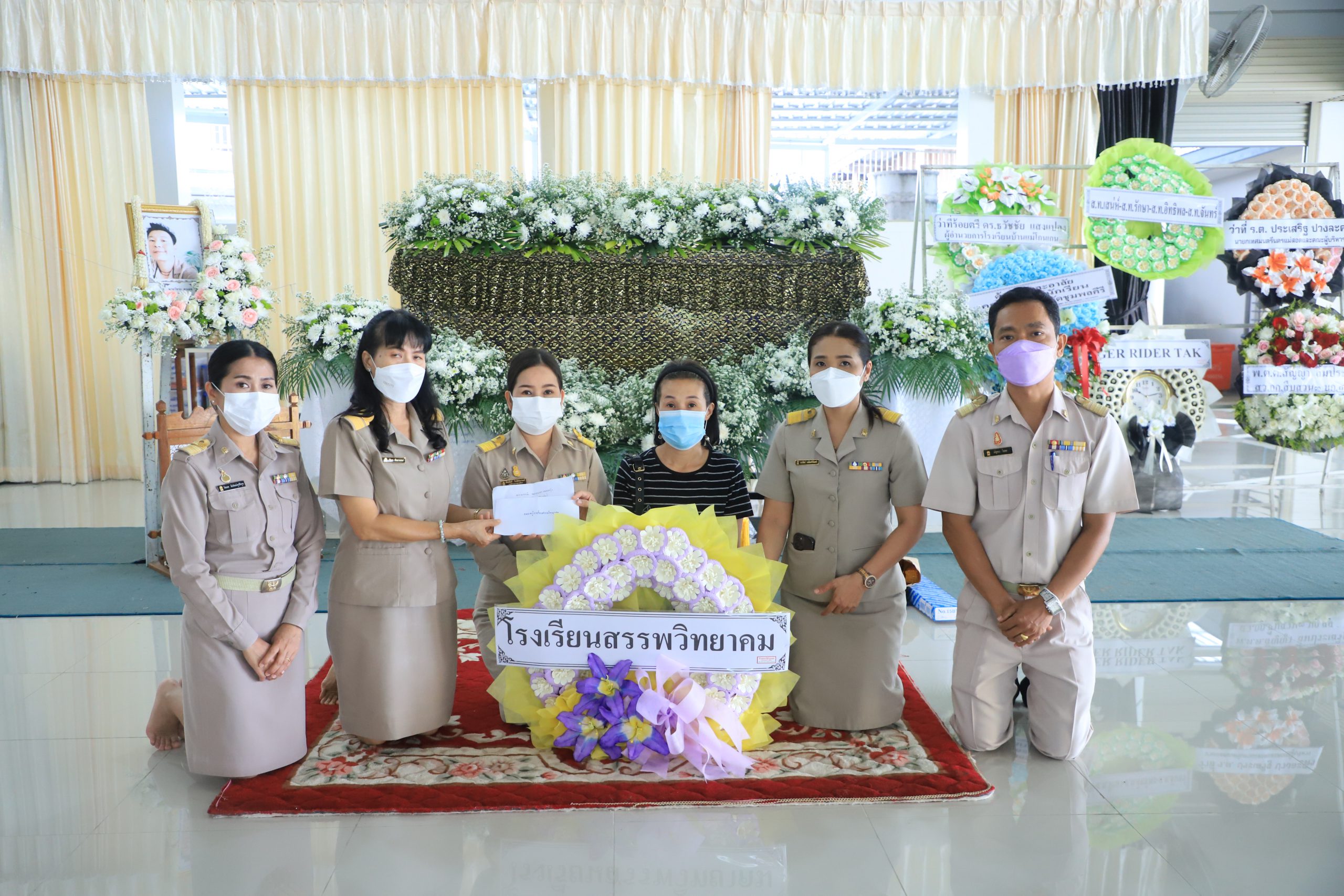 วันที่ ๑๕ สิงหาคม พ.ศ. ๒๕๖๕ นางสุภัทร เงินดี ผู้อำนวยการโรงเรียนสรรพวิทยาคม มอบหมายให้ นางพัทธนันท์ จิรเลิศธนานนท์ รองผู้อำนวยการโรงเรียนสรรพวิทยาคม พร้อมด้วยคณะผู้บริหาร คณะครู ร่วมวางหรีด เคารพศพผู้ปกครองนักเรียนโรงเรียนสรรพวิทยาคม โดยมี นางพัทธนันท์ จิรเลิศธนานนท์ รองผู้อำนวยการโรงเรียนสรรพวิทยาคม เป็นประธานมอบปัจจัยจำนวนหนึ่งแก่ครอบครัว นายอธิภัทร สุรเดช นักเรียนชั้น ม.๕/๑๓ พร้อมร่วมทำบุญอุทิศส่วนกุศลแด่ผู้วายชนม์ ณ วัดชุมพลคีรี อำเภอแม่สอด จังหวัดตาก
